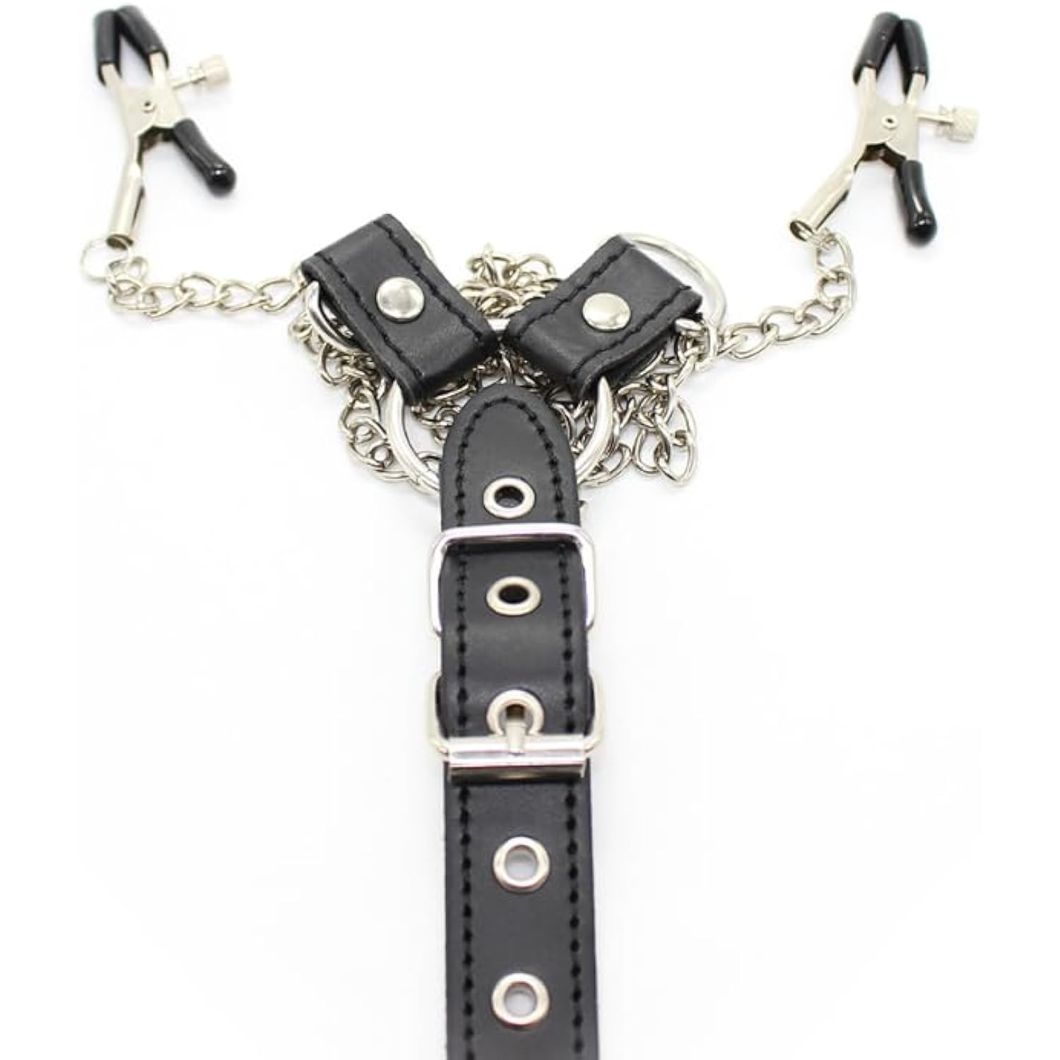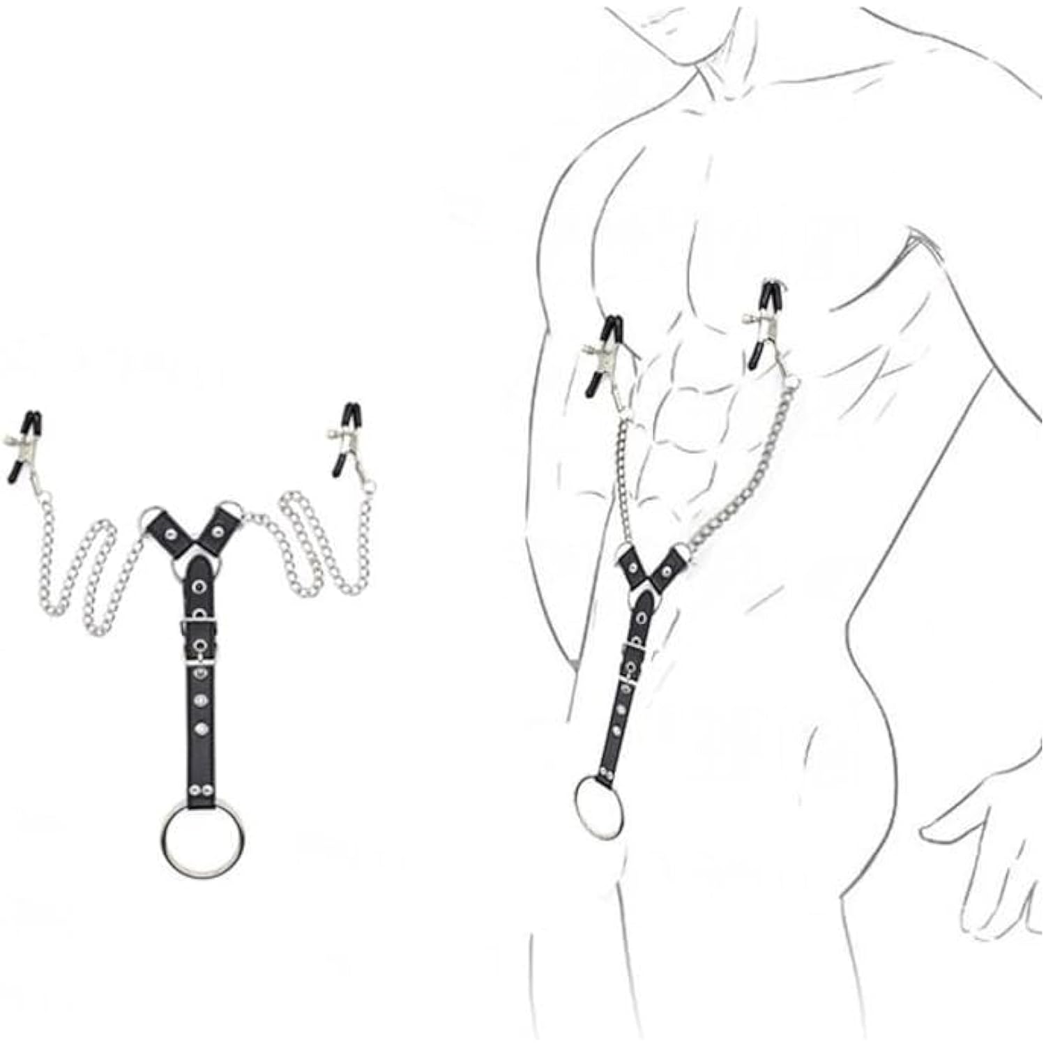 Men Sexy Nipple Clamps Chain With Penis Ring Erotic Leather Fetish Nipple Clamp Sex Toys Adjustable Breast Clips Bdsm Sexual Pleasure Tools Bedroom Sm Game For Couples Bdsm Bondage Kits