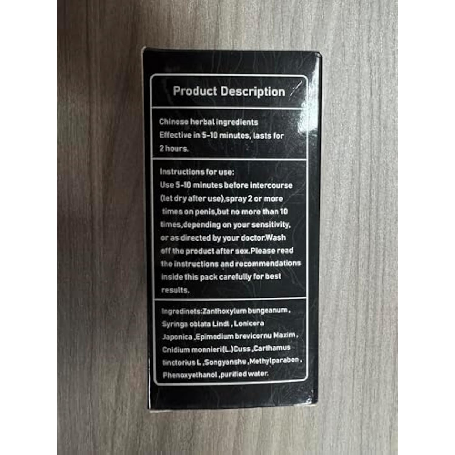 | 1. Superior Efficacy: Use Our Male Delay Spray To Improve Sexual Performance, Naturally And Gently Prolong Pleasure And Intimacy, So That Couples Can Live More Harmoniously | | 2. Natural Ingredients: Natural Plant Ingredients, Comfortable And Non-Irritating, Gentle Skin Care | | 3. Easy To Use: Convenient Pump Spray Bottle, No Traces After Use, Fast-Acting, Use 15 Minutes In Advance, Uninterrupted Intimacy | | 4. Confidential, Easy To Carry: Low-Profile Packaging, Small And Portable, Can Easily Be Put Into The Pocket. Wherever You Go, You Can Carry Our Spray With You To Enjoy Impromptu Encounters And Unforgettable Experiences | | 5. Safe And Healthy: Promotes Safe, Healthy And Fun Relationships, And Is Committed To Providing Innovative, High-Quality Products That Bring You Pleasure And Protection | |