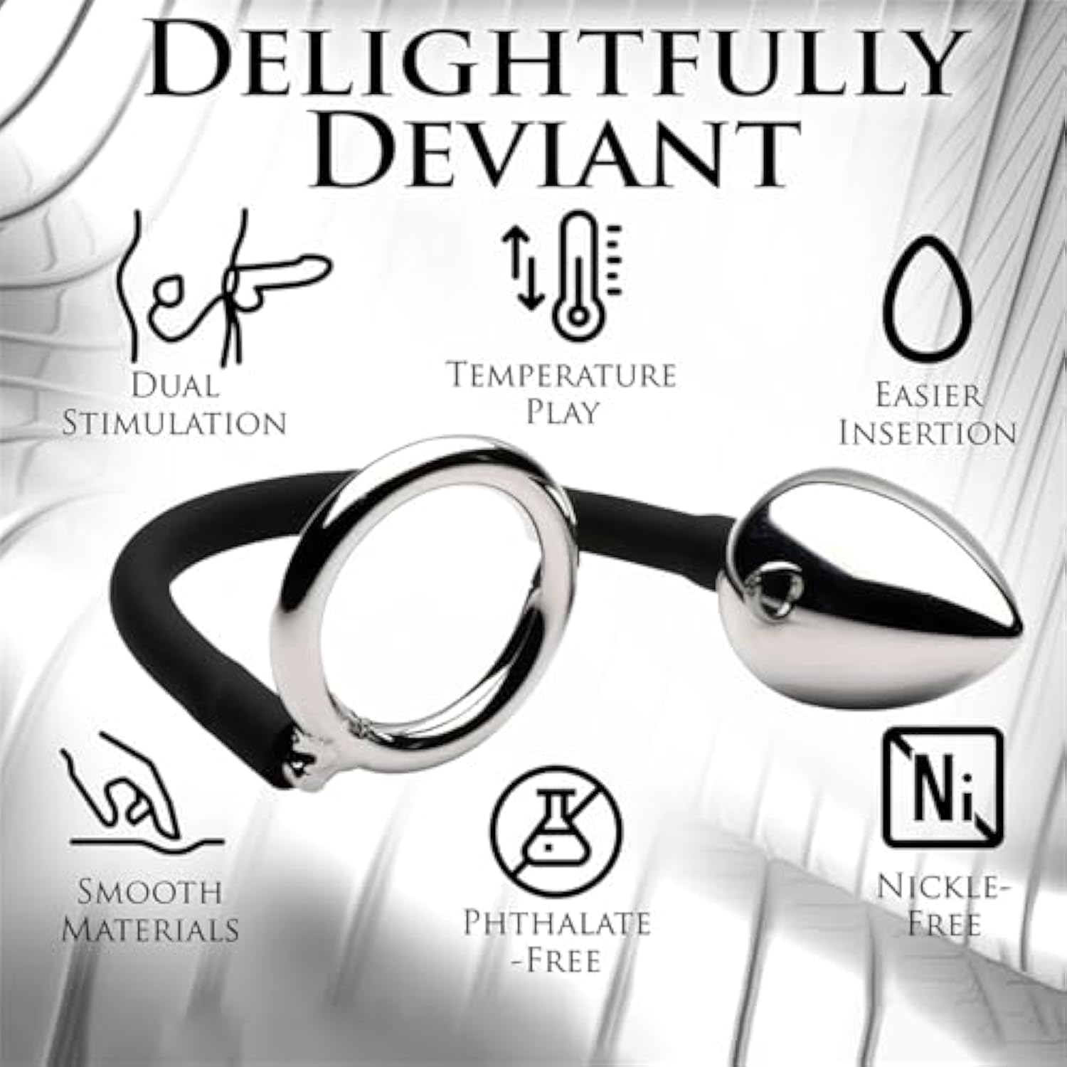 | Dual Stimulation Male Sextoy: Delight In The Combined Pleasure Of A Firm Shaft And Prostate Stimulation With Cock And Ball Ring With Anal Plug. This Versatile Toy Offers A Complete Experience For Ultimate Satisfaction | | Easy Insertion Design Butt Plug: The Tapered Tip Of The Plug And The Sleek Aluminum Alloy Construction. The Plug Is Connected To A Silicone Cord For Practical And Easy Use. Rest Assured Of The Highest Quality Standards And Manufacturing Practices With This Thoughtfully Designed Product | | Metal C-Ring: Functioning As A C-Ring, The Iron Ring Enhances Endurance And Hardness While Providing Simultaneous Prostate Stimulation With The Anal Plug. Enjoy Heightened Pleasure And Control With This Innovative Feature | | Temperature Play: Explore Temperature Play Sensations With This Toy'S Metal Construction, Which Is Responsive To Temperature Changes. Customize Your Experience By Adjusting The Toy'S Warmth Or Coolness Using Hot Or Cold Water | | Privacy And Quality Assurance: Each Order Is Meticulously Packaged To Safeguard Privacy. Ensure Quality By Double-Checking Before And Ing That We Never Sell Used Adult Toys, Providing You With New And Hassle-Free Sex Toys. If Have Any Queries, Feel Free To Reach Out To Us. Our Professional Team Is Dedicated To Promptly Resolving Any Issues To Your Satisfaction | |