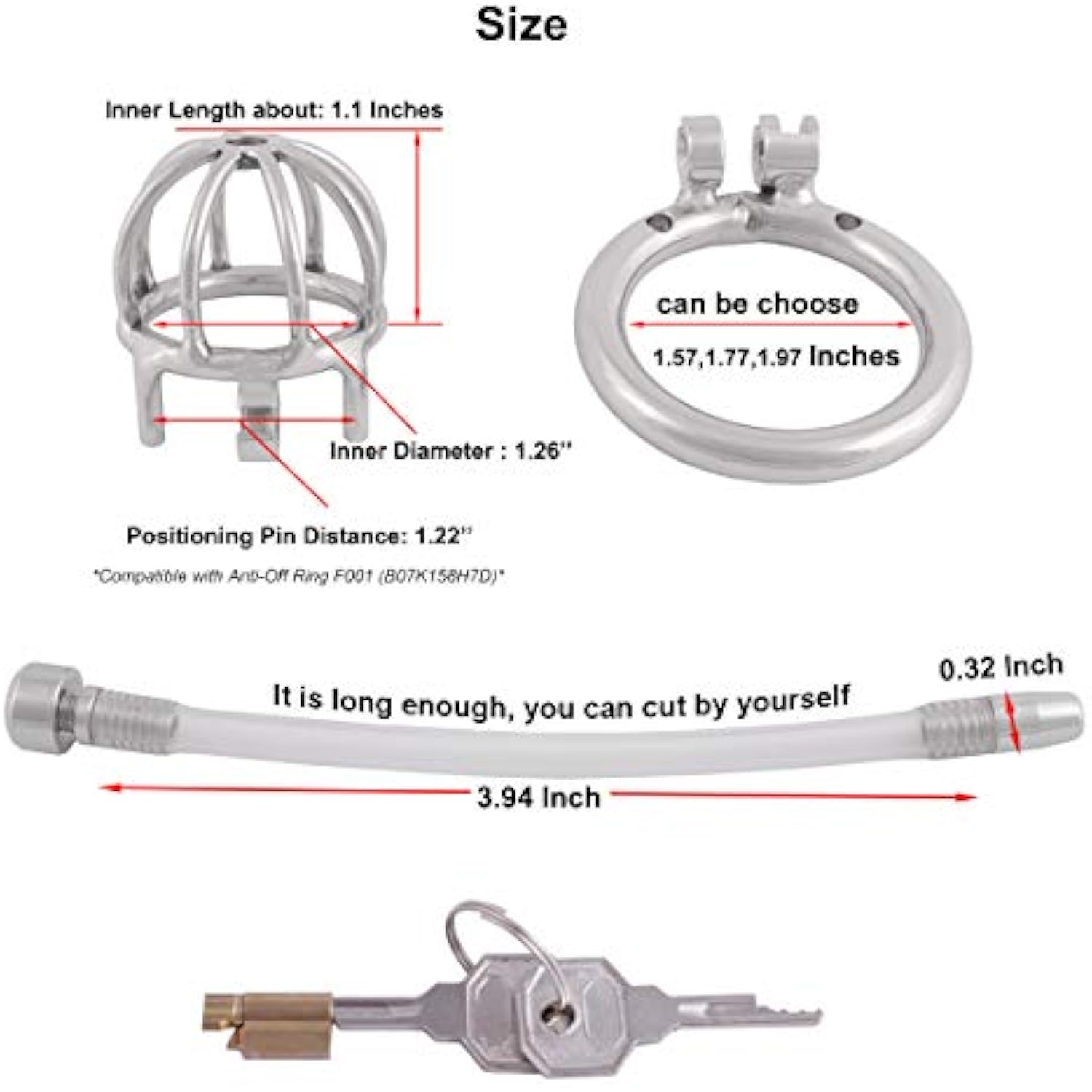 Metal Male Chastity Device Steel Stainless Cock Cage Sex Toy Ring With Tube C140 (1.57 Inch / 40Mm)