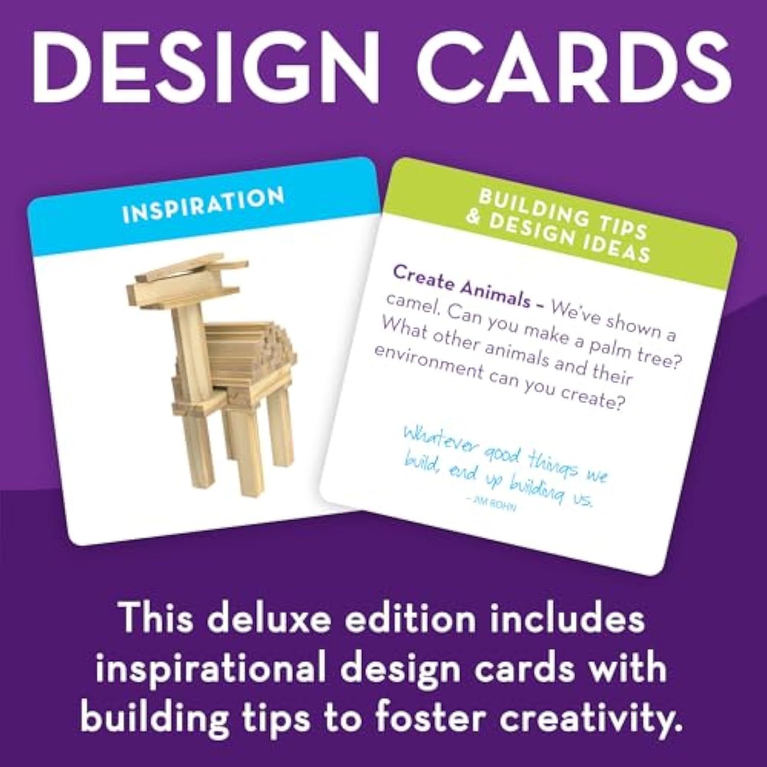 MindWare Keva Brain Builders Deluxe: STEM Building Toy Includes 75 KEVA Planks, 40 Puzzle Cards, 8 Design Cards, 3D Building Skills for Kids - Ages 7+