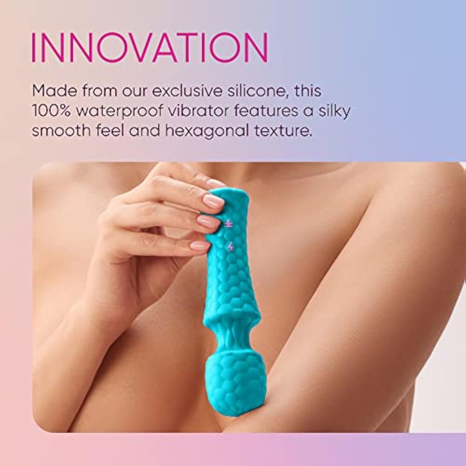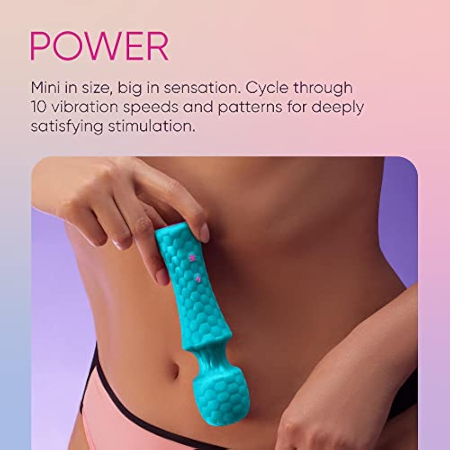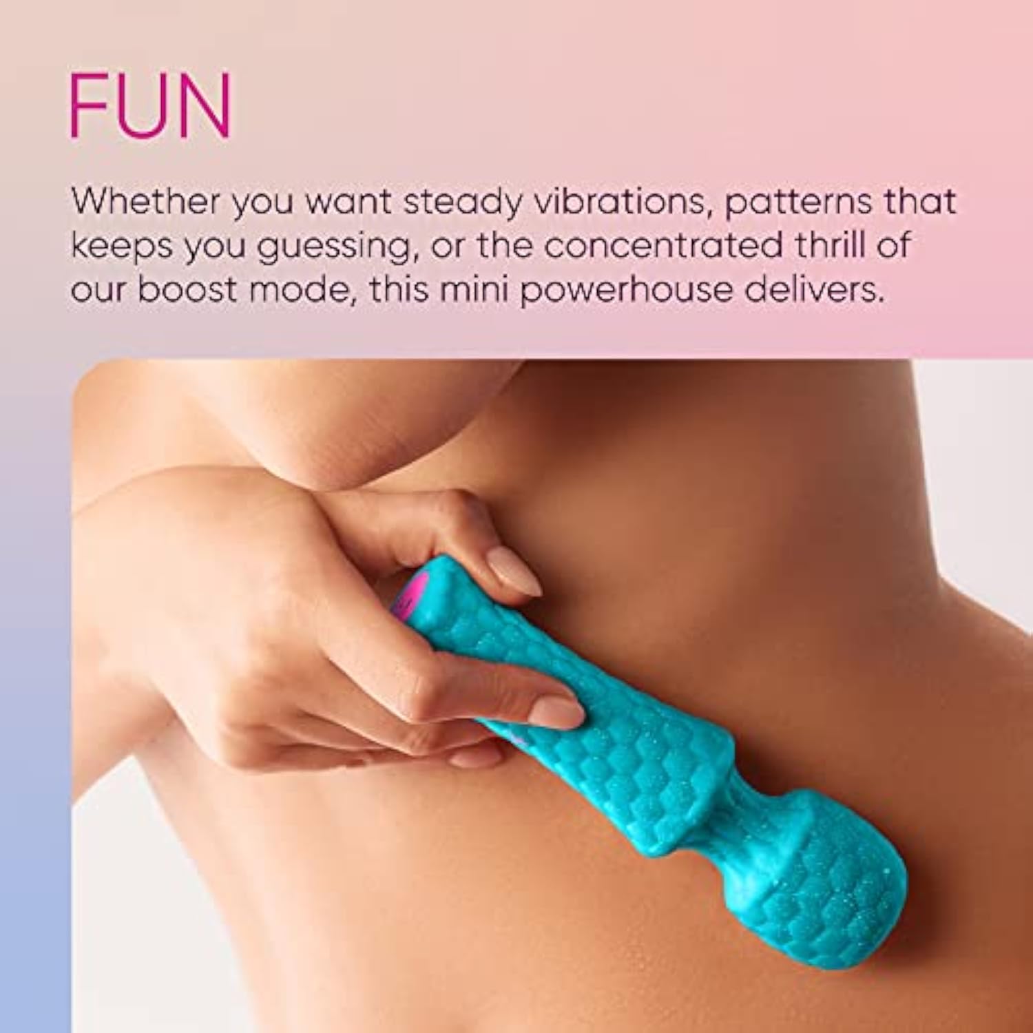 Mini Ultra Wand Vibrator Sex Toy - Travel-Size Silicone Adult Toy With Flexible Head & Internal Vibration Dampener To Prevent Hand Vibrating - 10 Patterns, Boost Mode, 100% Waterproof (Mini, Aqua)