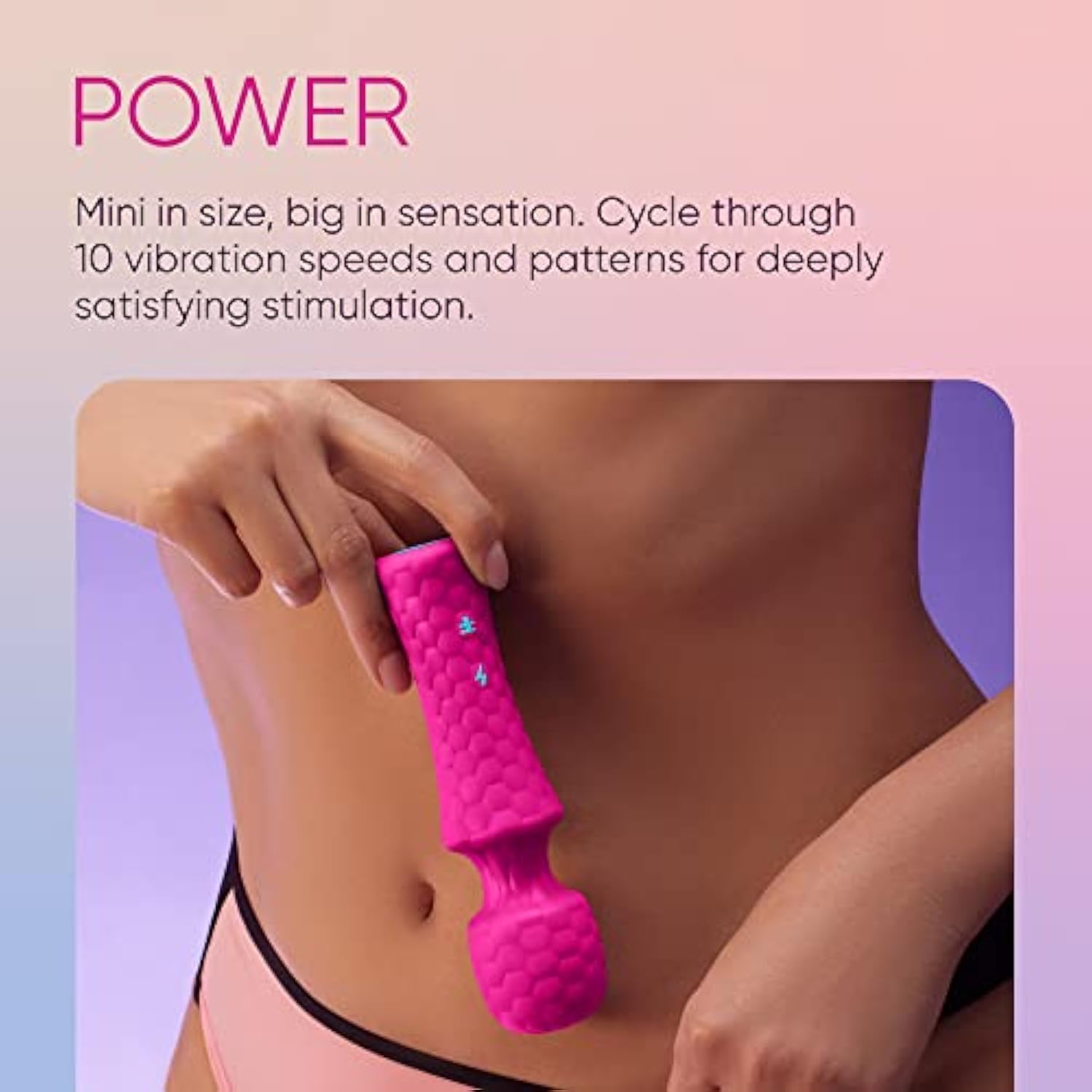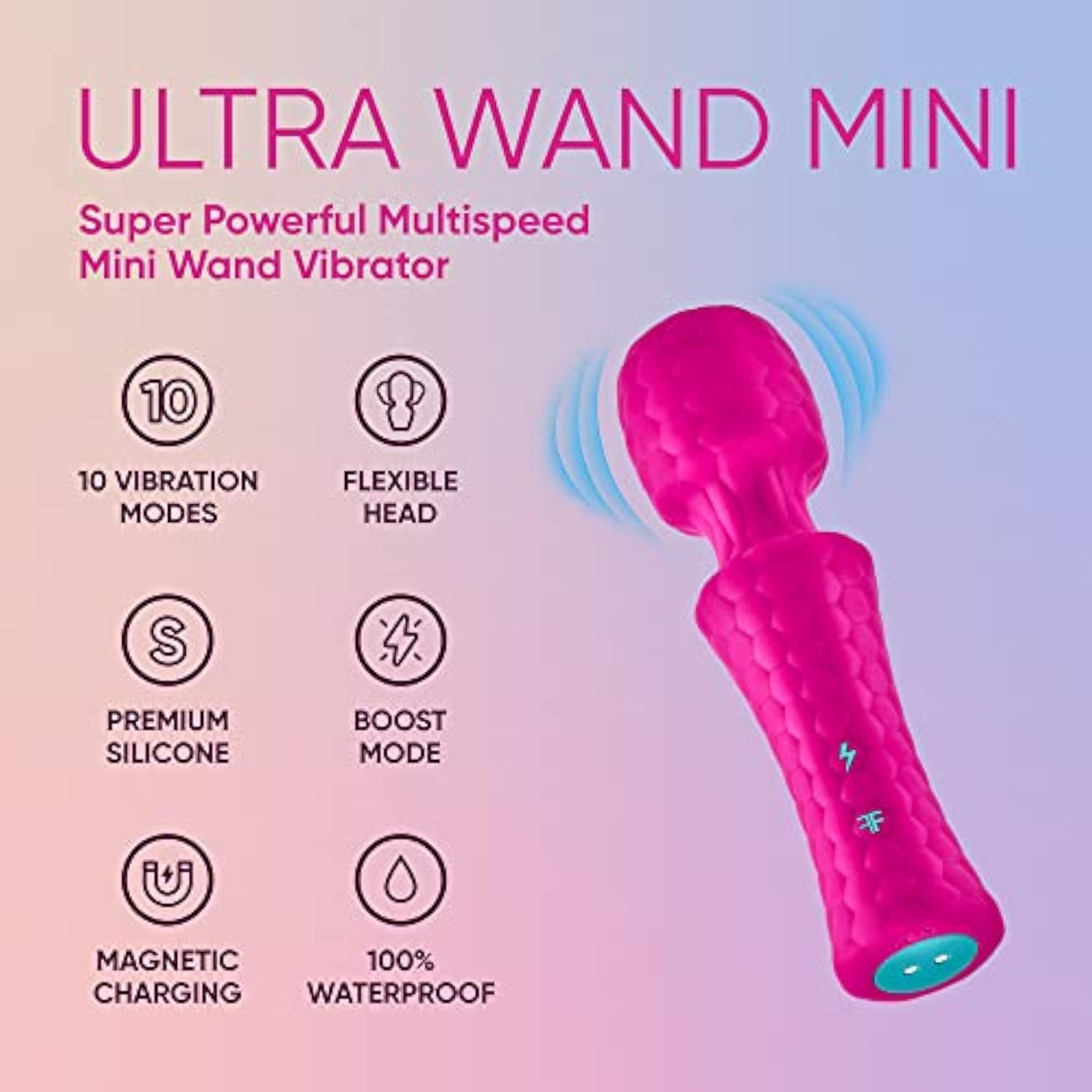Mini Ultra Wand Vibrator Sex Toy - Travel-Size Silicone Adult Toy With Flexible Head & Internal Vibration Dampener To Prevent Hand Vibrating - 10 Patterns, Boost Mode, 100% Waterproof (Mini, Pink)