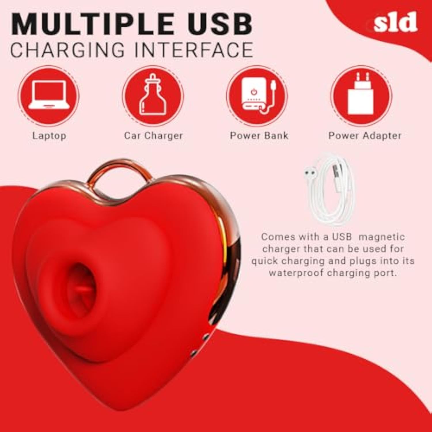 Mini Vibrator For Women - Heart Shape Stimulator With 10 Vibration Modes - 5 Modes Sucking Licking Clitoris Vibrator - Personal Massager For Female Couples Adult
