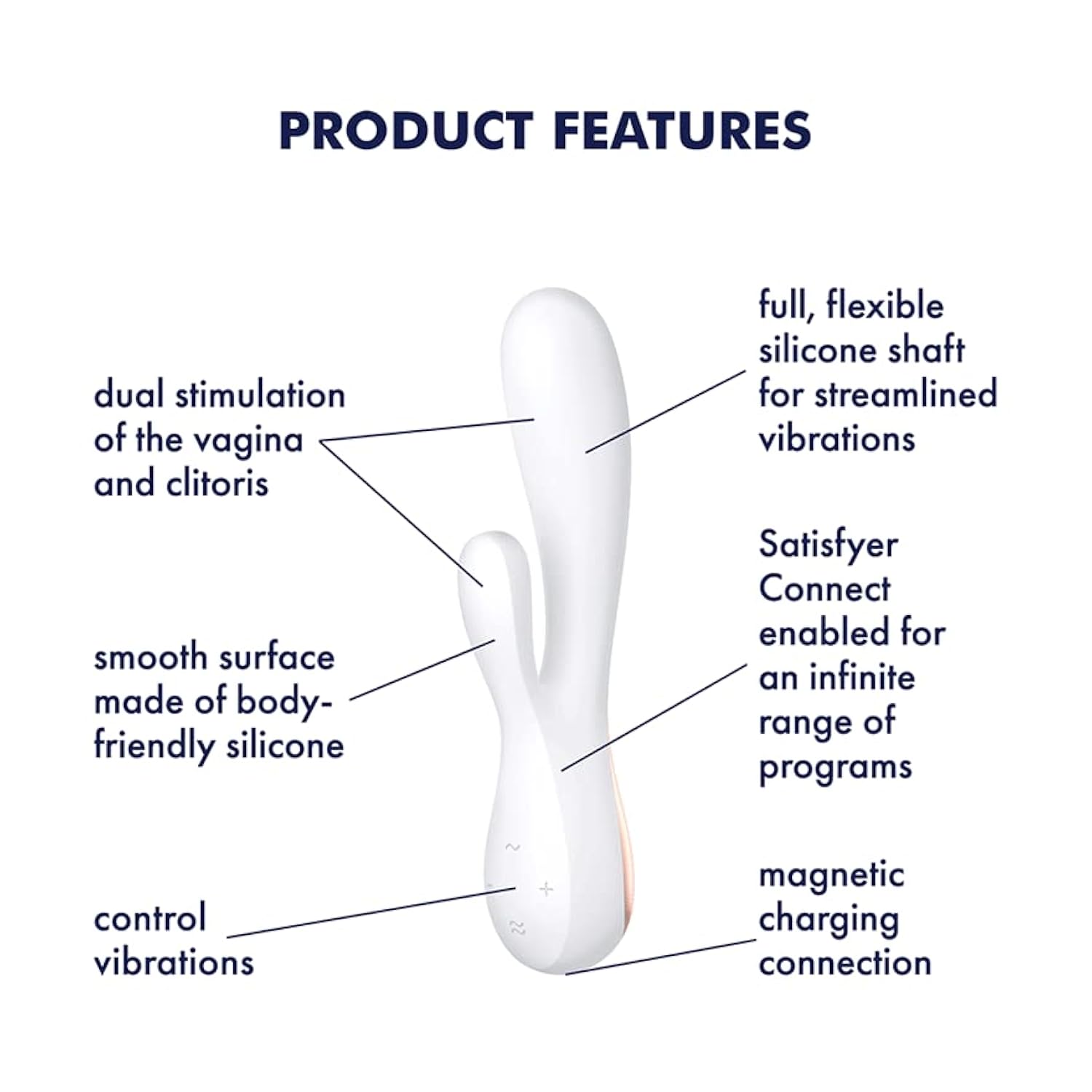 Mono Flex Connect App Vibrator Sex Toy | Adult Toys For Women | Rabbit Vibrator + App | Vibrating Sexual Pleasure Device | Stimulation Vibrators | Woman Sextoy (White)