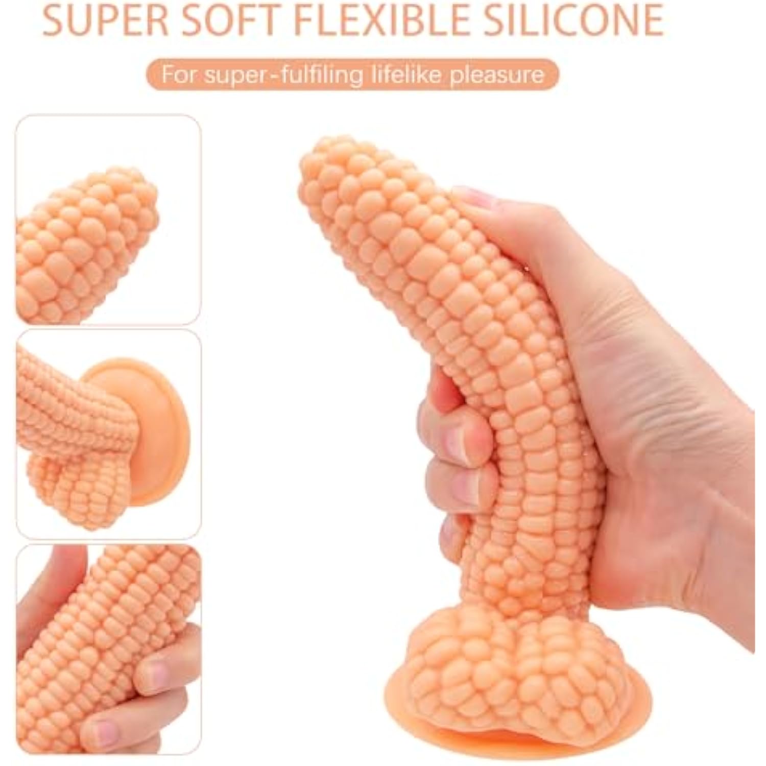 Monster Dildo Huge Realistic Dildo, Corn Style Waterproof Realistic Dildo Adult Sex Toy Anal Plug Textures Big Grain Corn Adult Sex Toy With Strong Suction Cup 8 Inch Flexible Soft Vegetable Dildos