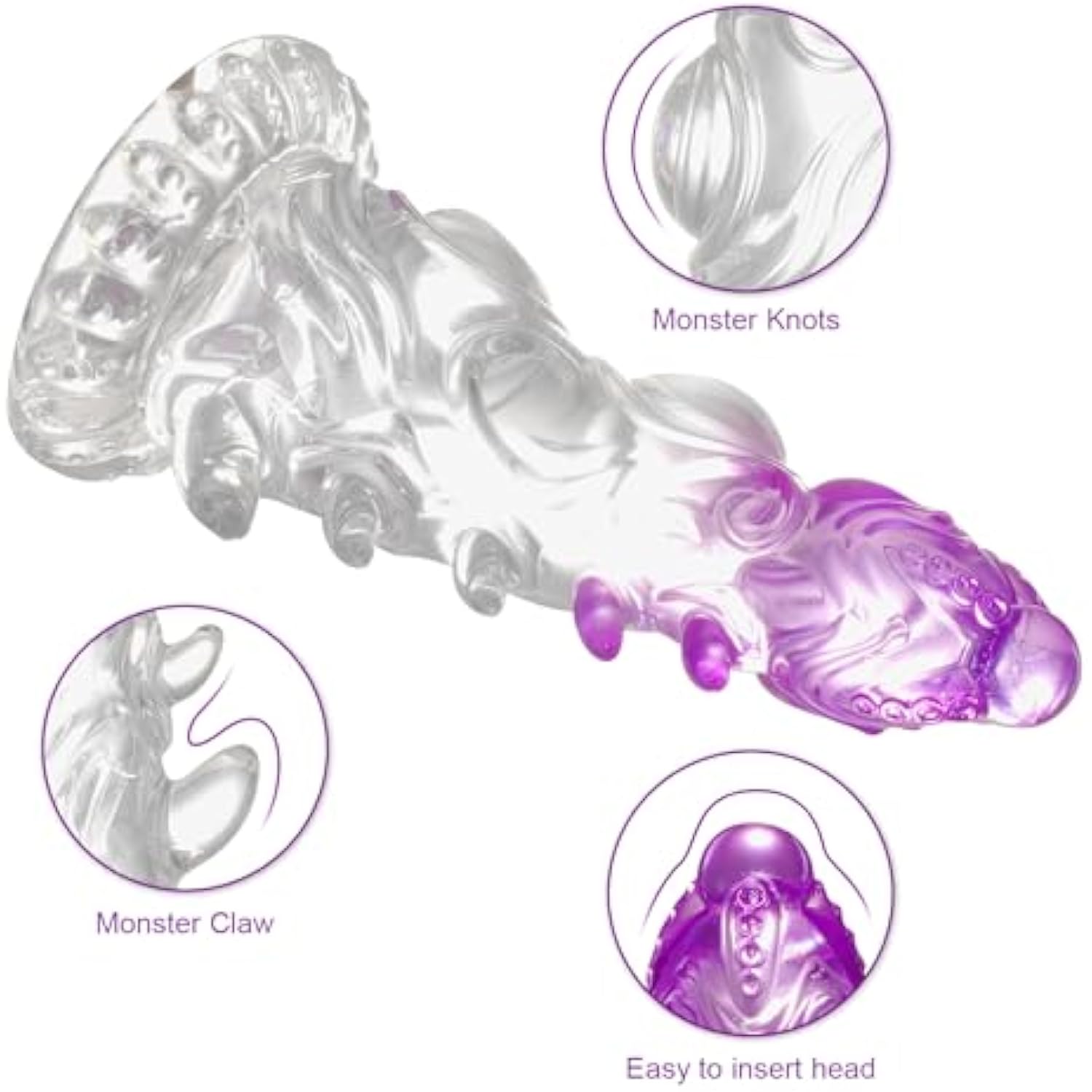 Monster Dildo Knot,7.6 In Fantasy Dildo With Big Knots And Suction Cup,Clear-Purple Gradient Adult Toys For Beginner Women