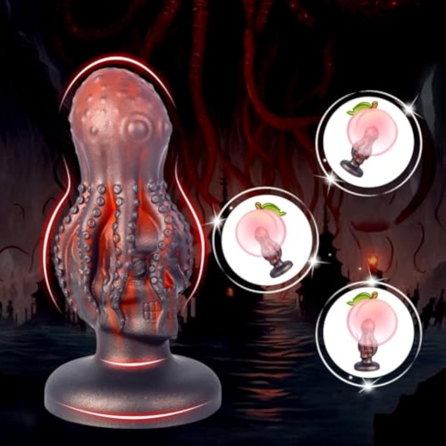 =- Unique Styling Design: This Anal Plug Is Overall Shaped Like A Gourd, Small At The Top And Large At The Bottom, Beneficial For Insertion Into The Anus, Giving A Slow Expansion. The Surface Is Octopus And Skull Head Texture, Dark Style, Halloween Can Be