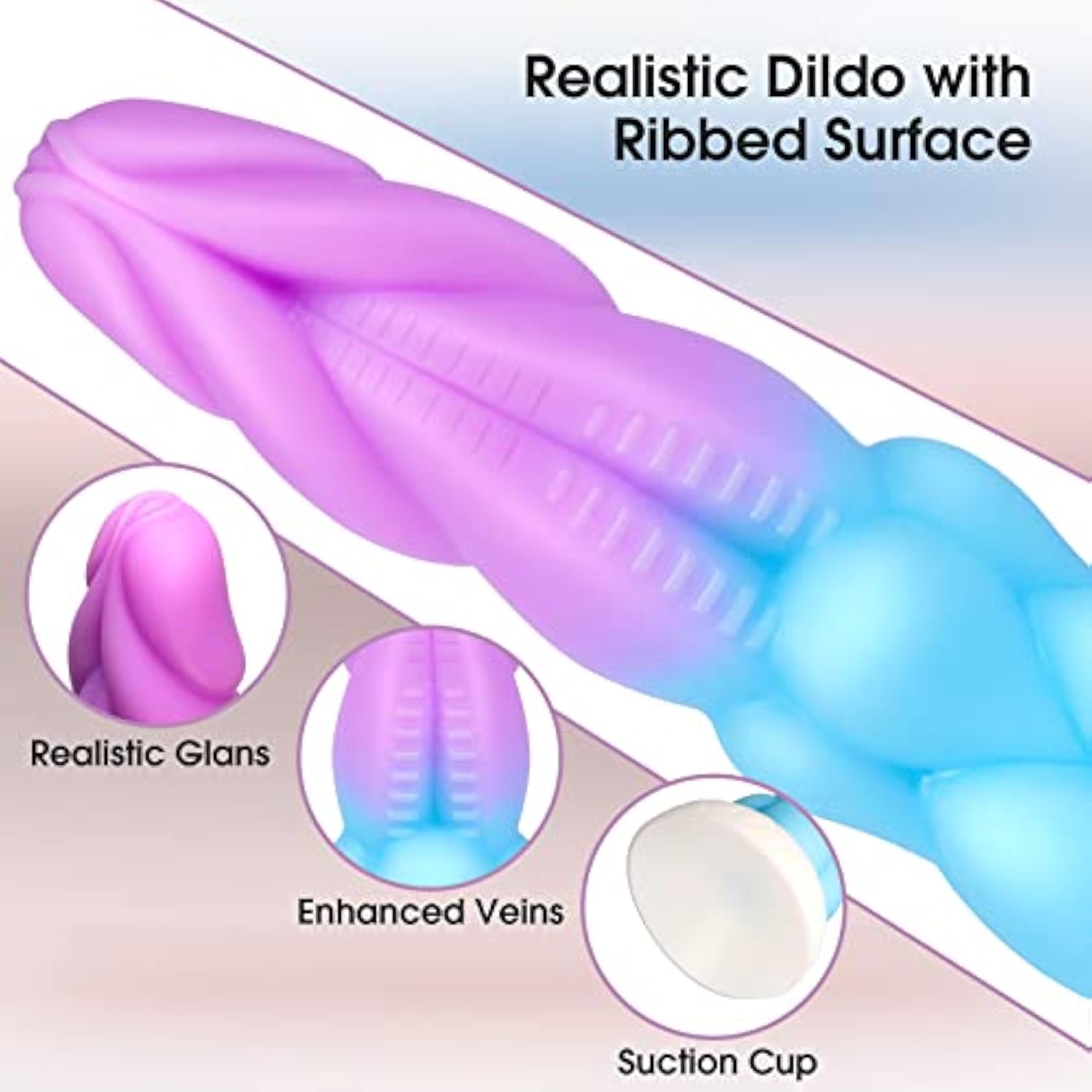 - ?Colorful Anal Dildo With Ergonomic Design?The Soft Gradient Color Adds A Touch Of Cuteness To The Monster Dildo, Providing A More Pleasurable Mood For Women. An Eye-Pleg 8.5 Inches Long, It Has Bumps Along Its Thick Shaft, Delicate Ridges, And Realisti