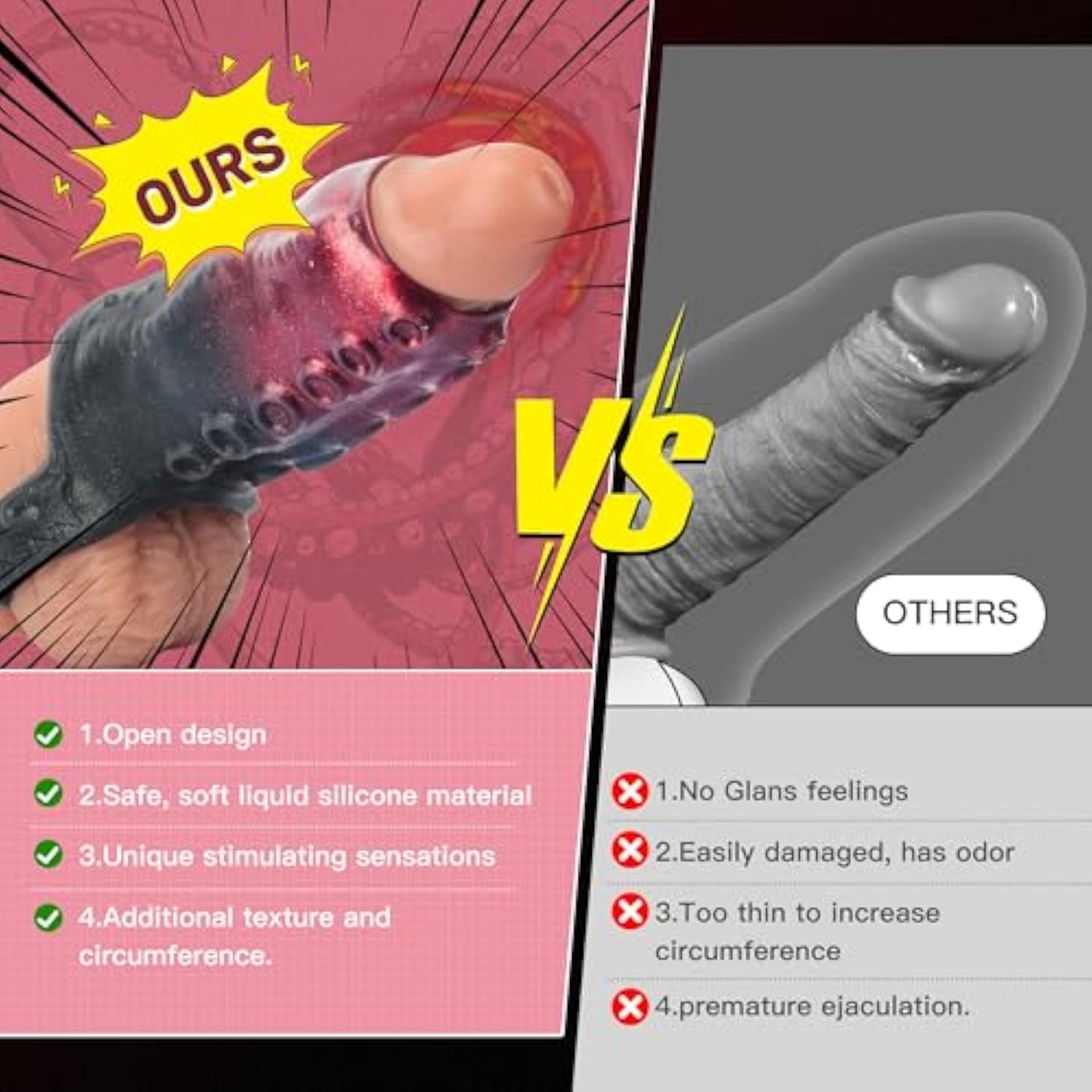 Monster Penis Sleeve Cock Sleeve With Cock Ring, Male Sex Toys Enhance Male Endurance, Reusable Penis Extender, Elastic Silicone Penis Ring To Enlarge Prolong For Men & Couples