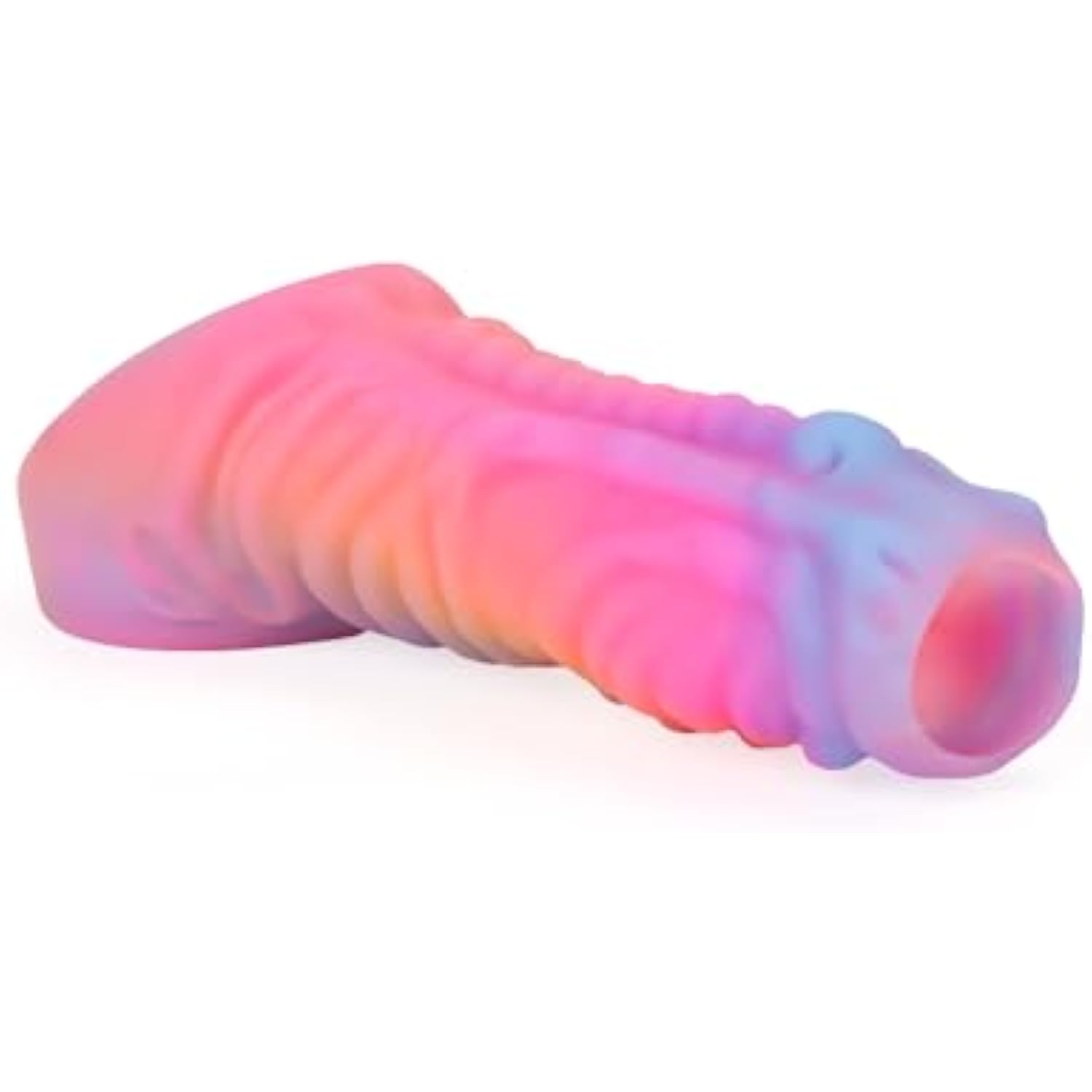 Monster Penis Sleeve Girth Enhancer for Men Reusable Pennis Sleeve Girth Enhancer, Pennis Extender Sleeves Monster Pennis Sleeve Girth Enhancer with Penis Ring for Sex (Pink)
