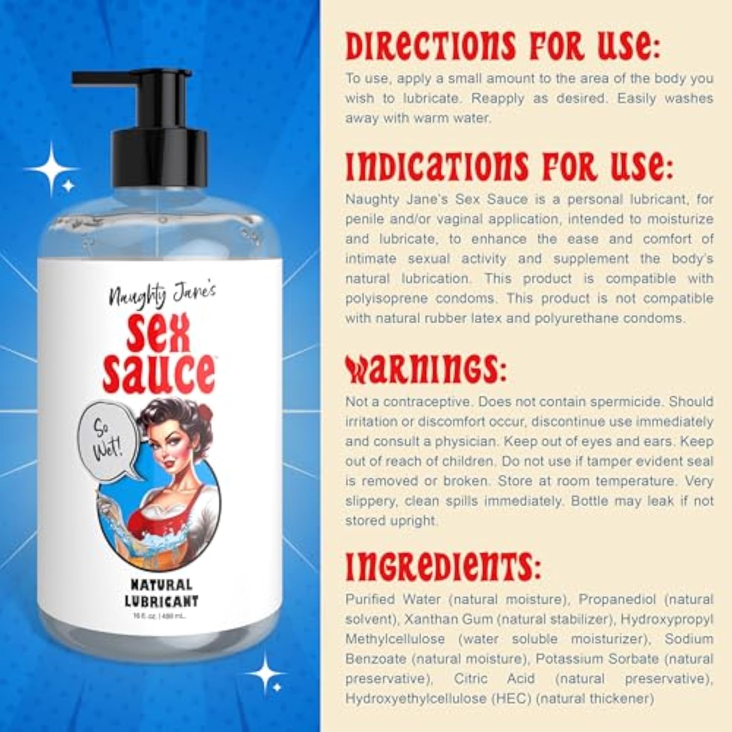 Naughty Jane'S Sex Sauce Natural Lubricant For Beginners, Men, Women, & Couples. Multi-Use Lubricant And Toy Compatible. Easy To Clean, Body-Safe And Unscented. 1 Piece, Clear - 16Oz.