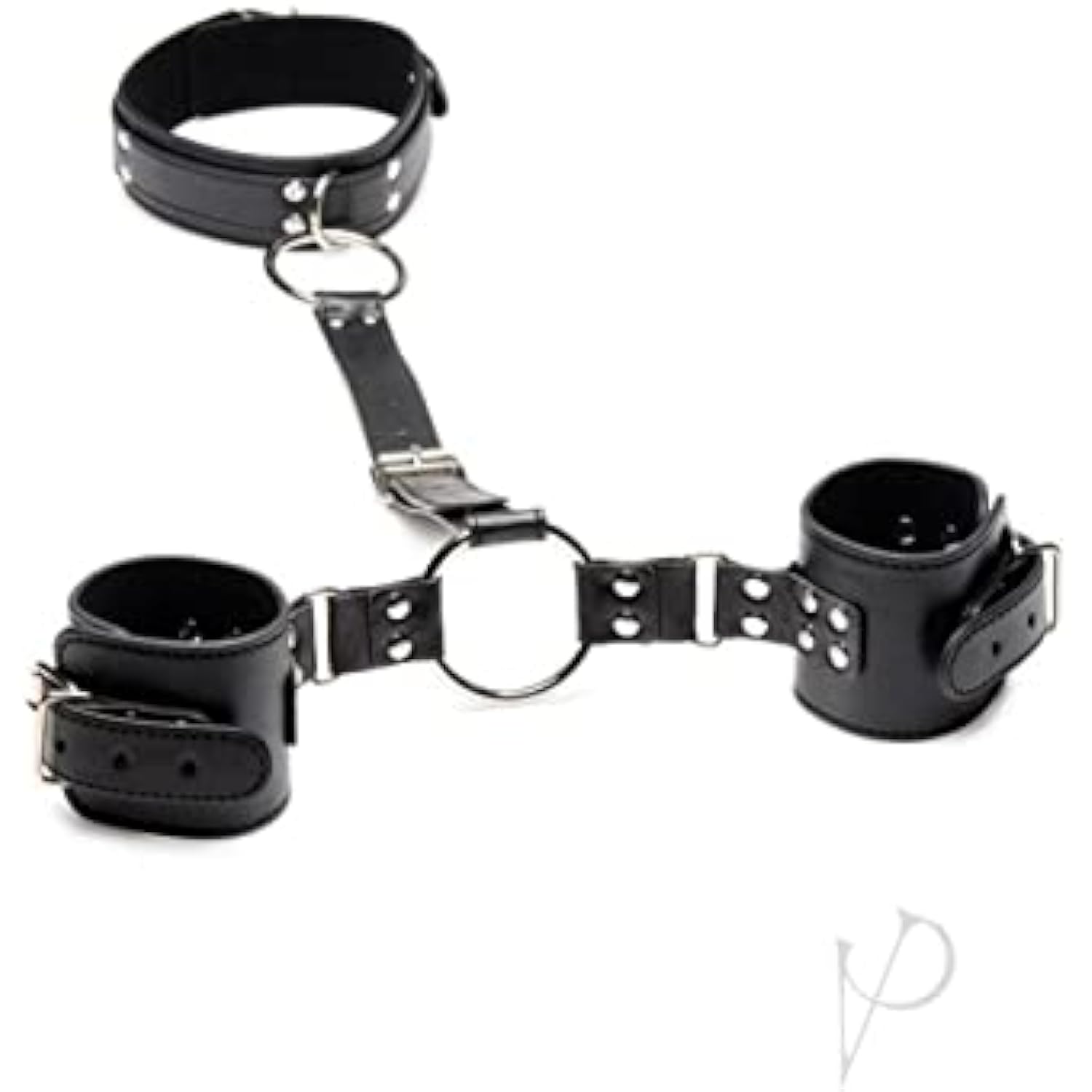 Neck To Wrist Adult Sex Bondage Pu Leather Restraints Set With Large O-Ring Attachments For Women, Men, & Couples, Fully Adjustable Wrist & Neck Collar Cuffs, Bdsm Kit