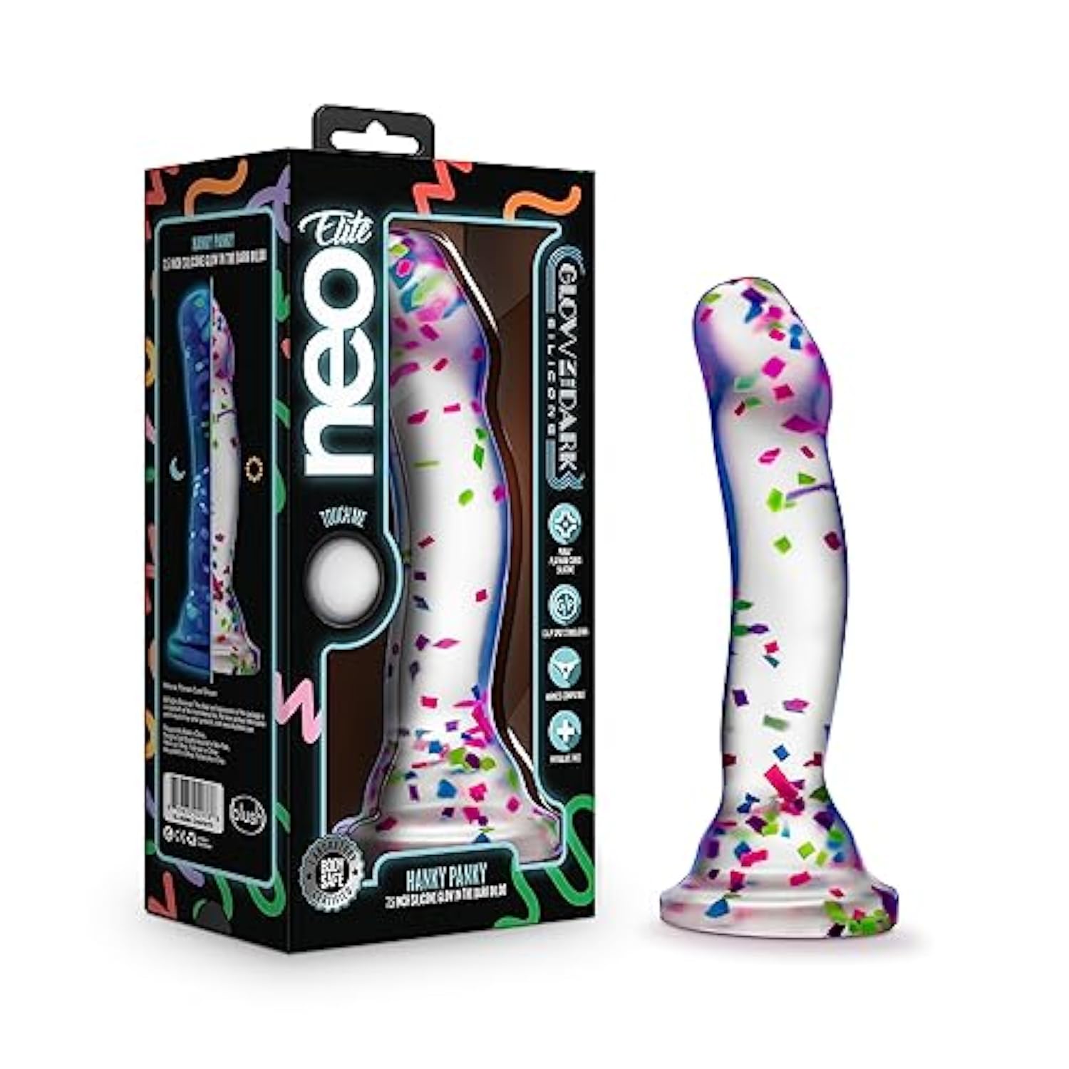 Neo Elite Purio Silicone Glow In The Dark Dildo - 7.5 Inch Clear Dildo With Fun Confetti - Thoughtful Curves For G Spot & P Spot Pleasure - Silky Smooth Non Pourous - Sex Toy
