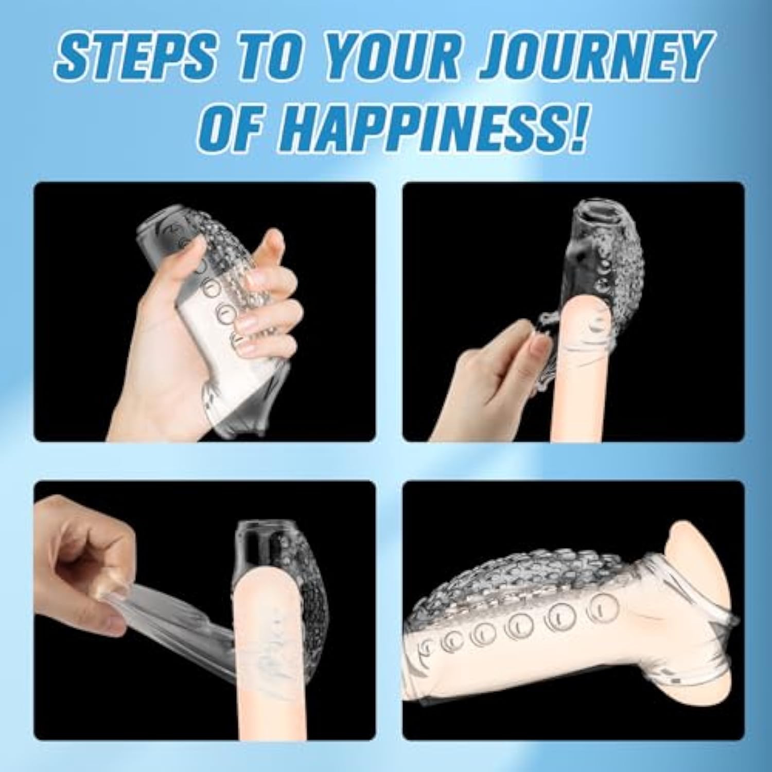 - ?New Design?: Brand New Design Wearing Our Penis Sleeve Bring Different Sensory,Soft Granules On The Outside.It Will Help You To Add More Girths. Our Penis Sleeve Comes With A Ring With Sperm Locking Feature Underneath. It Has Our Exclusive Design Textu