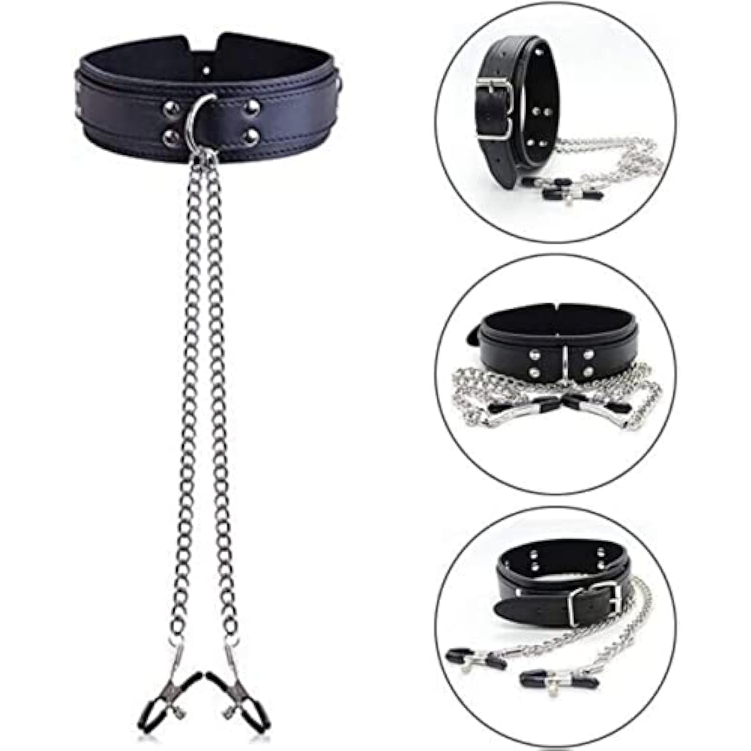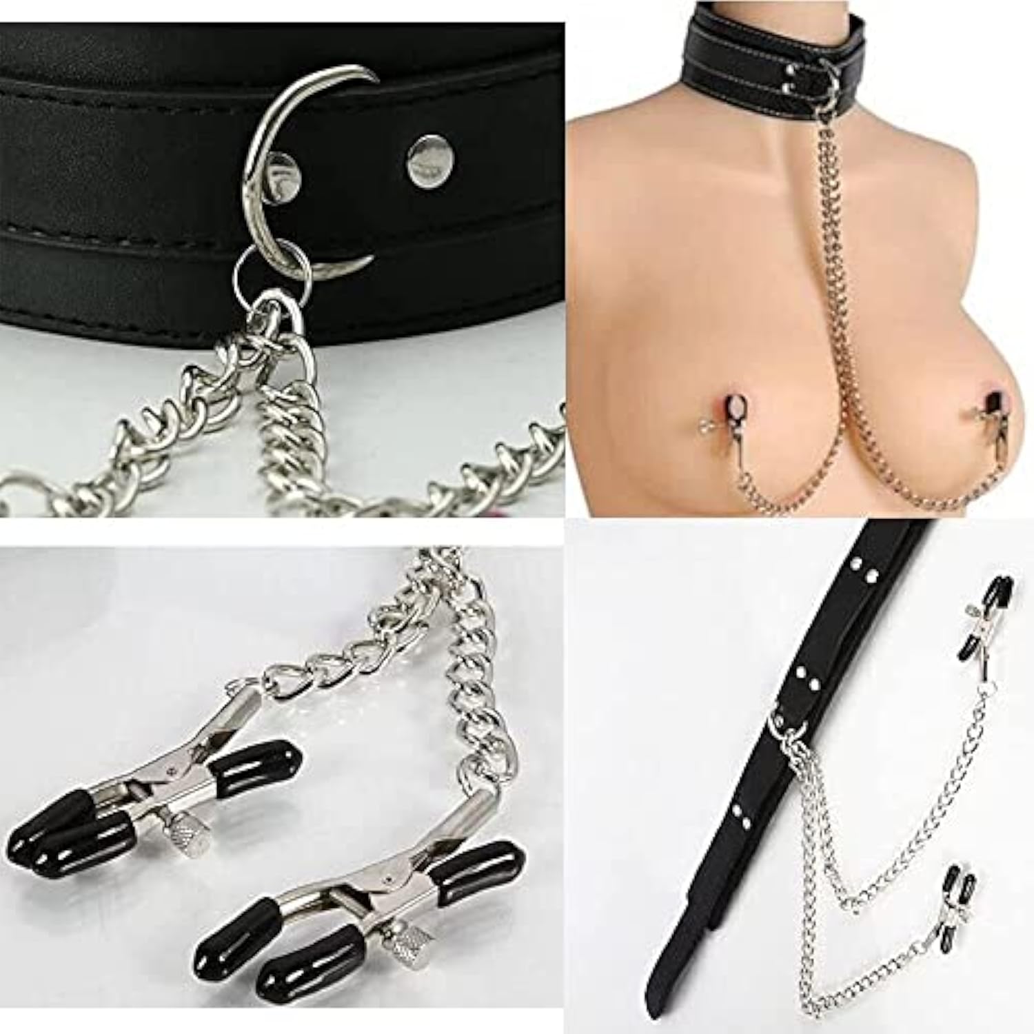 Nipple Clamps Adjustable Breast Clamps Breast Clip Leather Collar Choker Necklace Sm Nipple Clamps Necklace Chain Flirting Collar Breast Clip Bdsm Love Sex Toys For Women Adult Sex Toys