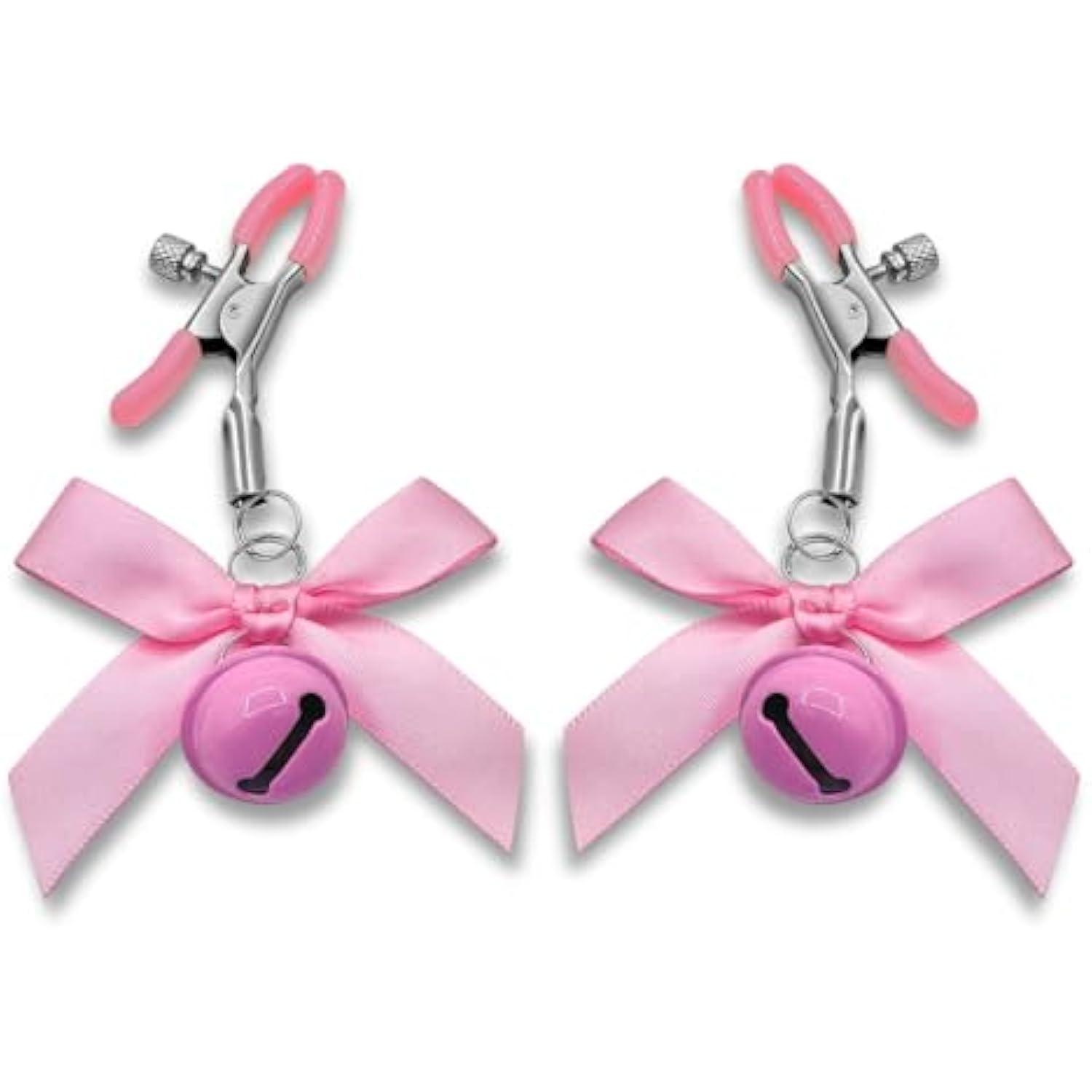 Nipple Clamps,Nipple Clamps For Pulling,Adjustable Nipple Clamp For Women And Men, Metal Nipple Clips Non Piercing,Nipple Clamps With Chain For Nipple Decoration,Nipple Clip With Bell (Pink Bow)