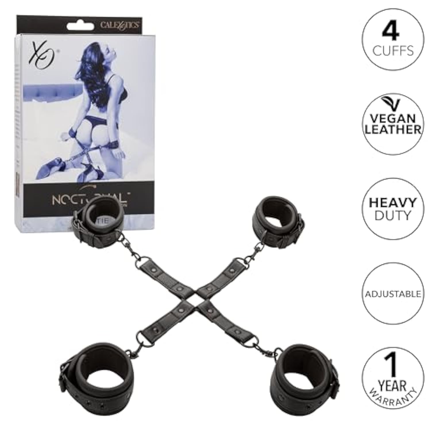| 4 Fully Adjustable Cuffs With Secure Buckle Closure; Disassembles Completely And May Be Used As Individual Wrist And Ankle Cuffs | | Sturdy Hog Tie Connector | | Sturdy, Double Stitched Design With Universal Clasps And D-Ring With Swivel Design For Full Dexterity | | Functional, Durable And Textured | | 1-Year Manufacturer | |