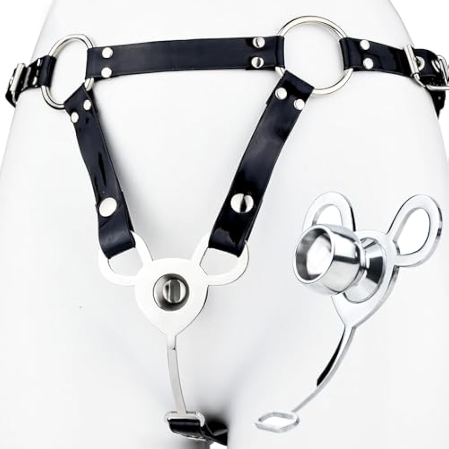 One Piece Urinal Chastity Cage Male With Leather Belt, Flat Sissy Negative Chastity Lock Sex Toy, Hollow Anti-Slip Cock Cage Bdsm Devices (L)