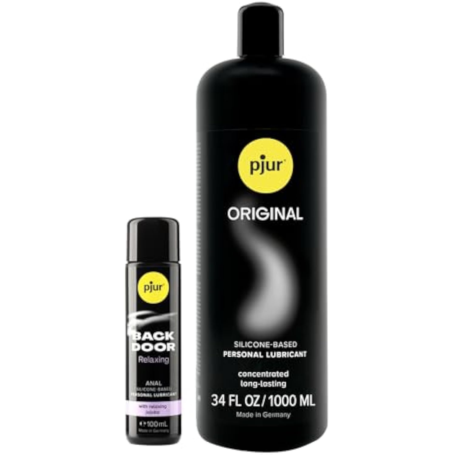 Original Silicone Based Personal Lubricant 34 Fl Oz & Back Door Silicone Based Anal Lubricant 3.4 Fl Oz - Couples Sex Toys Bundle