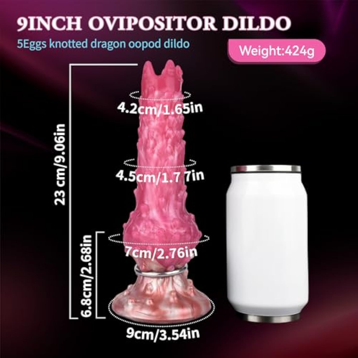 | 1. Ovipositor Tentacle Dildo - Gorgeous Tenatcle Ovipositor Dildo With Raised Bumpy Texture And Big Knot, Exotic Texture And Smooth Eggs Will Get More Stimulation. Specially Designed For The Experienced Players, Size: Total Length 9Inch, 2.7Inch Wide, Insert Length 8.26Inch. Eggs: 1.5Inch Long And 1.2Inch Thick. | | 2. Premium Liquid Dildo - Big Anal Dildo Made Of High-Quality Soft Silicone Material, 5Eggs And Dildo Are All Silicone Material, Soft Outside But Firm Inside. Waterproof Material Easy To Clean. | | 3. Pneumatic Pump - Fantasy Ovipositor Dildo Is Pneumatic To Lay Eggs. Operation: Unscrew The Valve In Front Of The Air Bag Counterclockwise And Place The Lubricated Eggs Into The Dildo Through The Head, Then Tighten The Valve Clockwise And Use. | | 4. Gorgeous Color - Long Dragon Dildo Is Artificially Mixed In Gorgeous Goldpink Color, Without Leak And Washoff In Long Term Storage. | | 5. Confidential Packageand After-Sale Service- Every Sex Toy Packed In Confidencial Box, The Product Information Is Secret. We Provide Considerate
