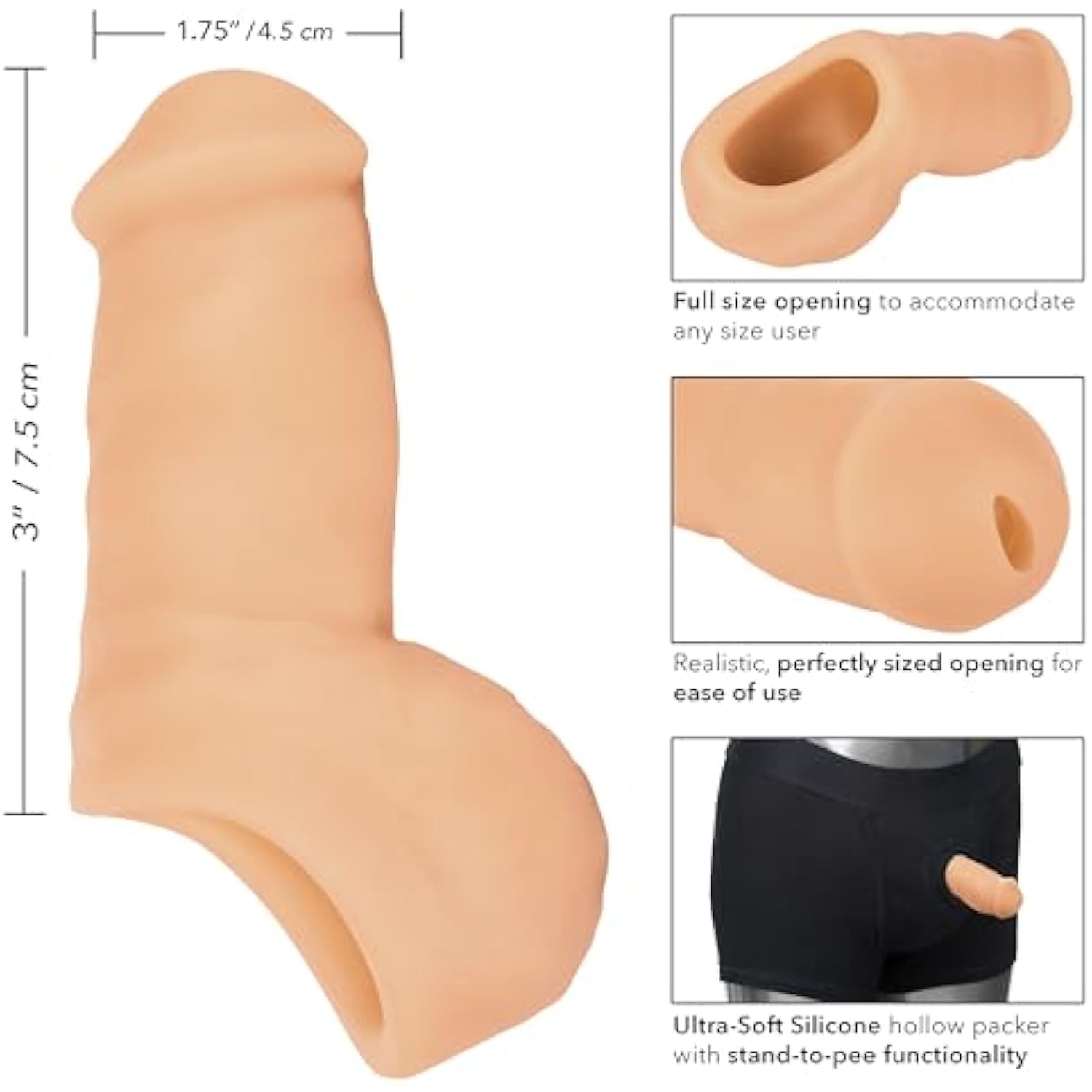 Packer Gear 4 Inch Ultra-Soft Silicone Stp (Stand-To-Pee) Packer Penis - Ivory Se-1582-20-3
