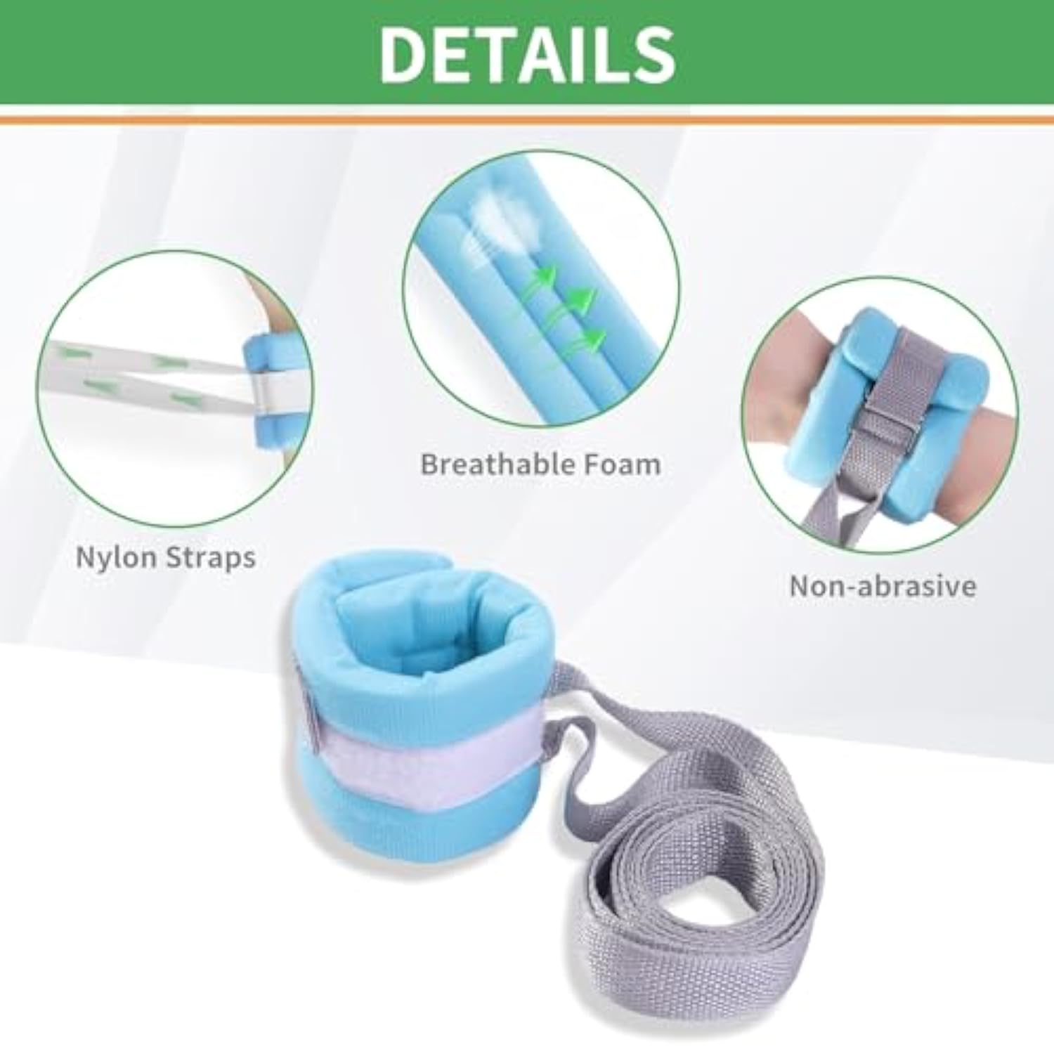 Patient Medical Restraints, Hospital Bed Wrist Strap, Patient Ankle Straps For Bed Safety Rails, Hospital Bed Restraint For Hand, Feet, Ankle Or Arm, Limb Holders, Medical Bondaged Restraints