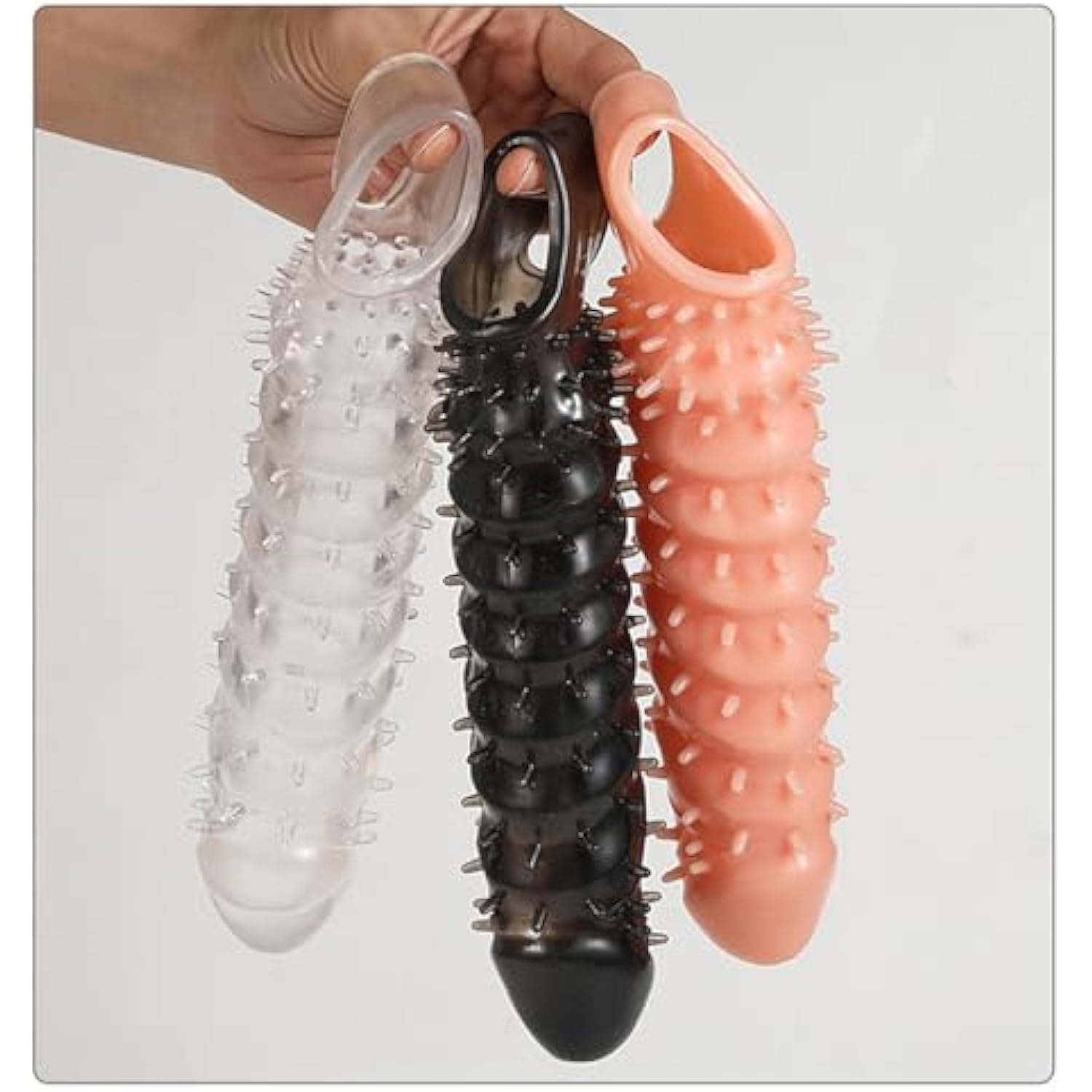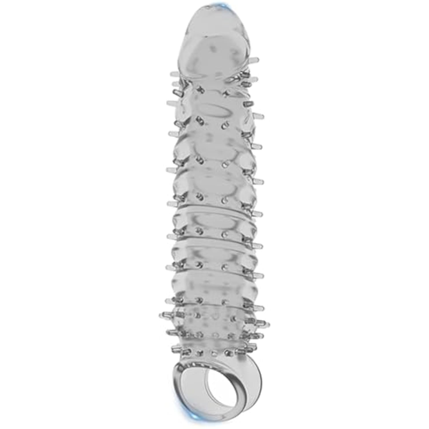 Penis Extender Realistic Textured,Ultra-Soft Thickened Clear Cock Sleeve Reusable Pennis Enlarger Condom Sex Toys For Men & Couple (White)