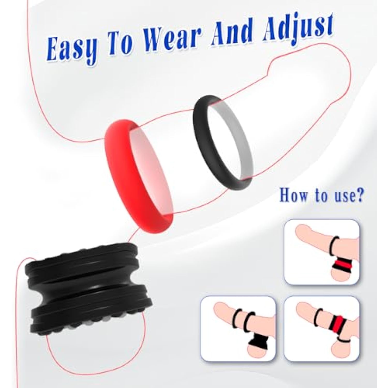 Penis Ring Adult Sex Toys For Men, Penis Sleeve Cock Ring Set With 8 Different Sizes, Silicone Male Sex Toys For Erection Enhancing, Ball Stretcher Ring With Dual Reinforcement Cock Ring Set