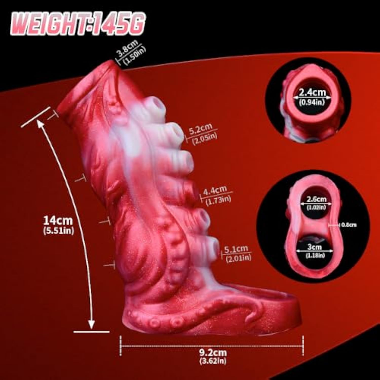 Penis Ring Silicone Sleeve 5.5 Inch Octopus Animal With Stem Enhancer Enhances Erection Enlarges Penis For Men And Women Sex Toys (Red)