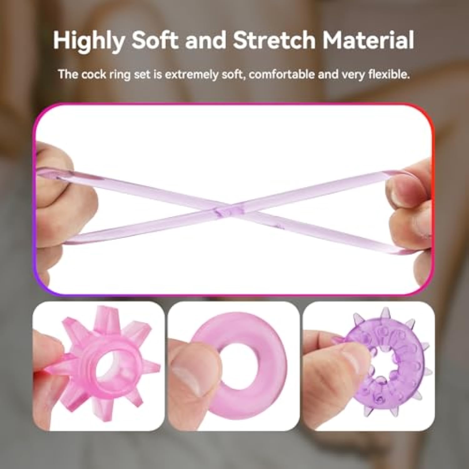 | Safe And High-Quality Material. Made From High-Quality Silicone, Our Cock Rings Are Safe For The Body And Easy To Clean. They Can Be Reused Multiple Times Without Any Degradation In Quality, Ensuring Long-Lasting Pleasure. | | Exceptional Elasticity For All Sizes. With Excellent Elasticity, Our Cock Rings Are Suitable For All Sizes. These Cock Rings Will Provide A Snug And Secure Fit, Ensuring Maximum Pleasure And Satisfaction. | | 5 Different Pleasure For Choosing. 5 Different Styles Provide Different Types Of Stimulation. It Can Also Be Combined In A Variety Of Ways, And Can Be Matched At Will, Which Can Make Your Penetration Different And Let Your Partner Experience A More Different Sexual Experience. | | Enhanced Performance: Experience Heightened Pleasure And Longer-Lasting Performance With Our Cock Rings. They Help Increase The Size, Strength, And Endurance Of Your Cock, Leading To More Satisfying Sexual Encounters For You And Your Partner. | | Lightweight Waterproof. This Adult Male Toy Is Recommended For Use With A Water-Based Lubricant. You Can Enjoy Sexual Pleasure In The Pool, Bathtub, Beach And More. Please Wash With Water After Use. | |