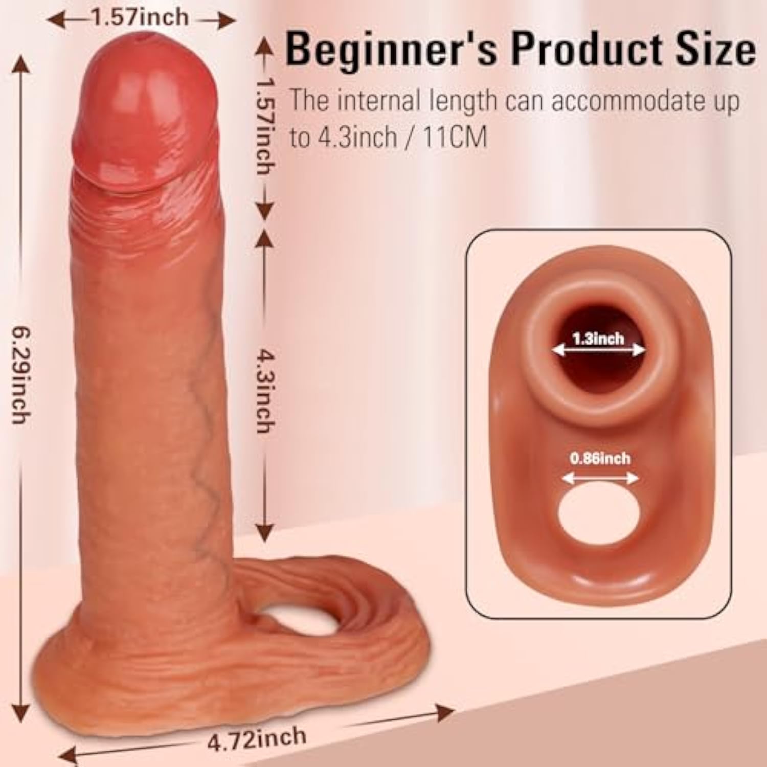 Penis Sleeve 1.5" Cock Extender Body Safe Liquid Silicone Cock Sleeve Realistic Penis Enlarger For Erection Enhancement, Adult Men Sex Toys Reusable Penis Extender (Inside Length 4.3'')