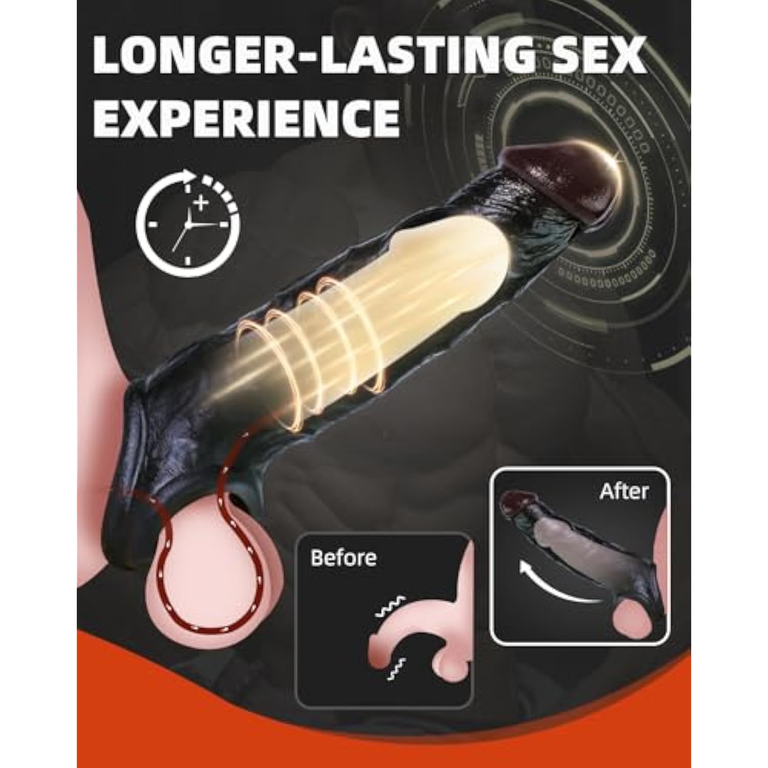 | ?Humanized And Realistic Design?: This Reusable Cock Sleeve Penis Extender Adopts A New Texture And Wearing Design. When Worn, The Length Is Increased By 2In And The Thickness Is Increased By 35%. This Sex Toy Can Stimulate The Anal Clit G -Spot , Etc And Is Suitable For Men Couples Women. | | ?Flexible Cock Sleeve Wrapping?: The End Of This Penis Extender Adopts A Wrapping Design, Which Can Firmly Cover The Ball, Making The Dildo Sleeve Not Slip Off Easily, Enhancing The Experience. By Gently Restricting Blood Flow, It Can Fully Promote Congestion And Increase Length And Thickness. And It Extends The Time, Giving You A Long-Lasting Stimulating Experience. | | ?Excellent Material?: This Adult Toys Is Made Of Safe And Non-Toxic Materials, 100% Waterproof, Skin-Friendly And Elastic. After Wearing It, You Can Enjoy A Comfortable And "Condom-Free" Experience. | | ?Rich Usage Scenarios?: With 3Penis Rings Set, This Adult Sex Toy Can Be Worn By Men Directly, Or Used By Women With Vibrating Toys. Couples Can Also Use It With Each Other. The Scenarios Are Rich, And The Experience Method Is Unlocked By You. | | ?Worry-Free After-Sales Service??Sex Toys For Men Are Packaged Discreetly And Do Not Contain Any Logos Or Patterns, Ensuring Your Absolute Privacy. Set Includes: Penis Sleevex1, Penis Ring X3, Instructionsx1, 100% After-Sales Service, You Can