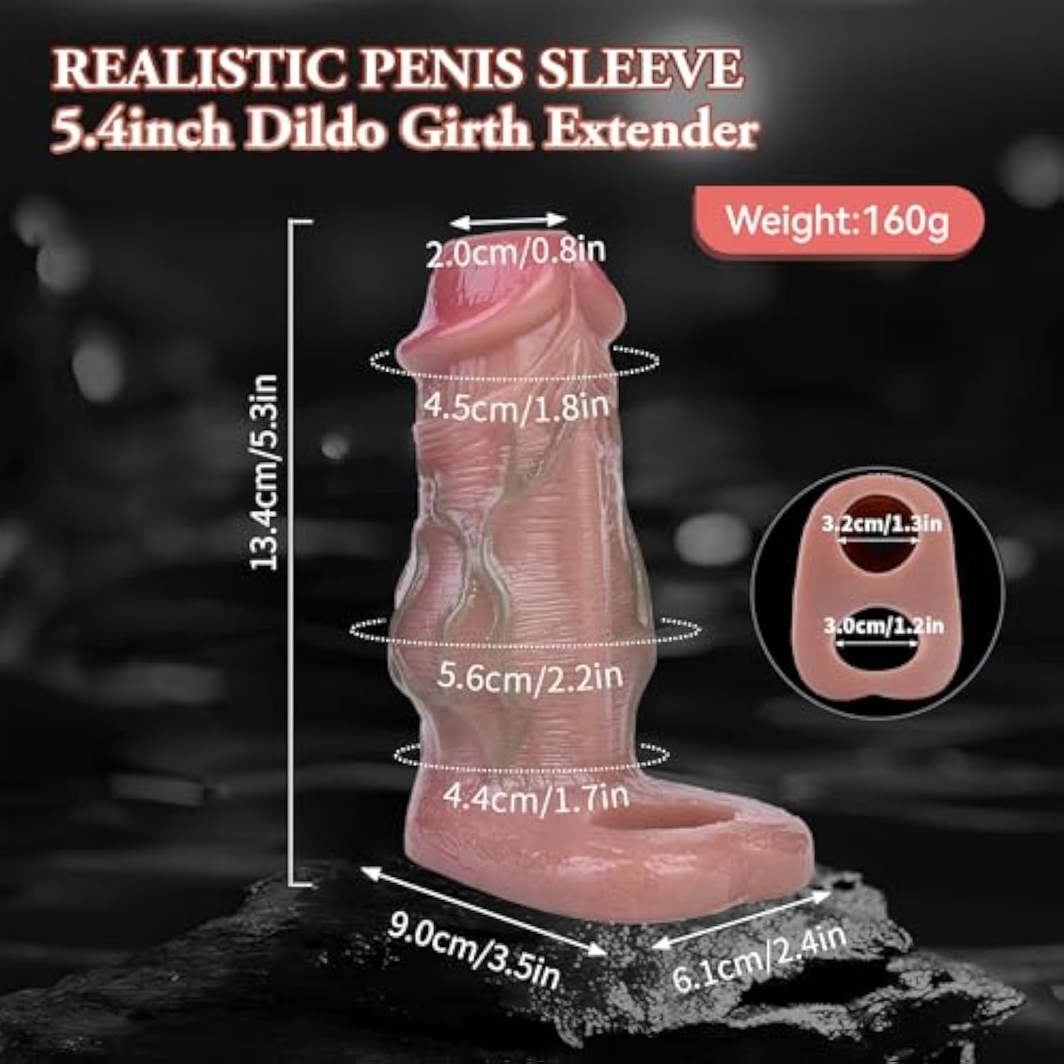 Penis Sleeve Enlarger With Knot, Thick Cock Sheath Realistic Silicone Penis Extension Girth Extender With Cock Ring Enhance Erection Cock Enlargement For Adult Sex Play