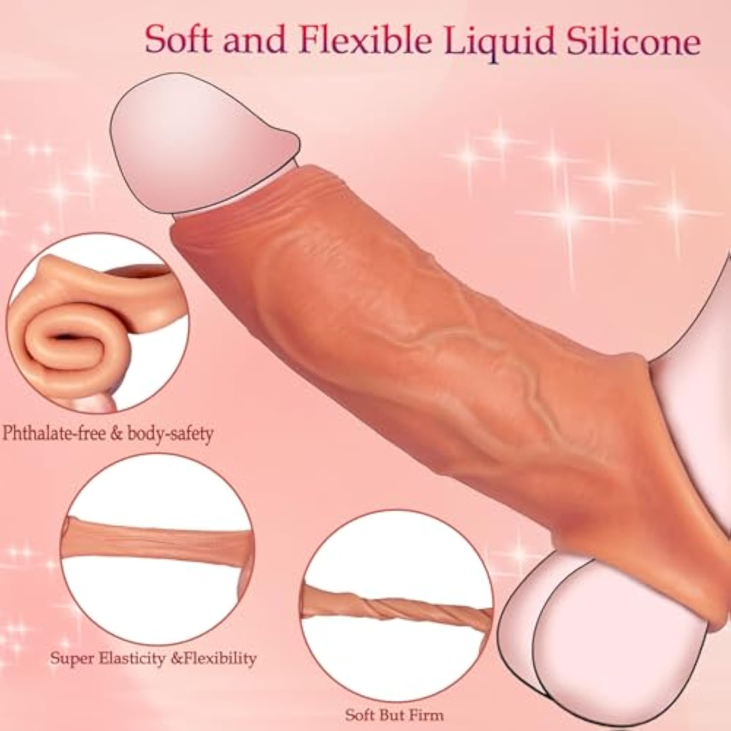 Penis Sleeve Extender Cock Sleeve,Reusable Cock Sheath Penis Pump,Silicone Penis Enlarger Sleeves Girth,Delay Ejaculation Stronger Erection,Enhancement Adult Sex Toys For Men Couples Enlarge Prolong