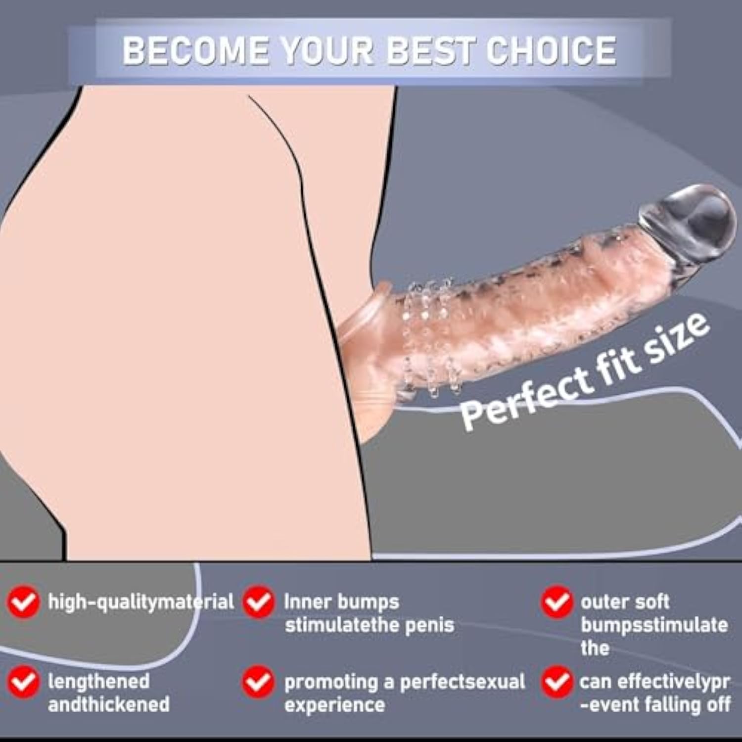 - Unique Design For A Different Sensory Experience, Flap Grooves And Complex Textures For More Friction, It Has Our Exclusive Design Texture Around It. The Penis Sleeve Is Not Only Increase Your Penis With 1.5 Inch Extension At The Tip, But Also 30% Boost