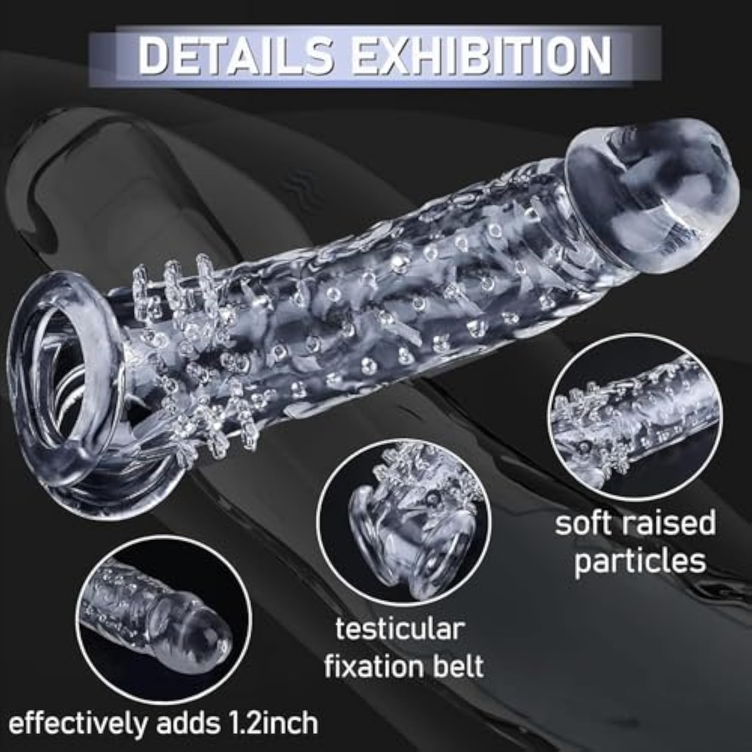 Penis Sleeve Extender Enlarger - 1.5" Sex Toy Full Length 8" Penis Extender Cock Enlarger Condom Toys Adult Male Sex Toys For Men Couple