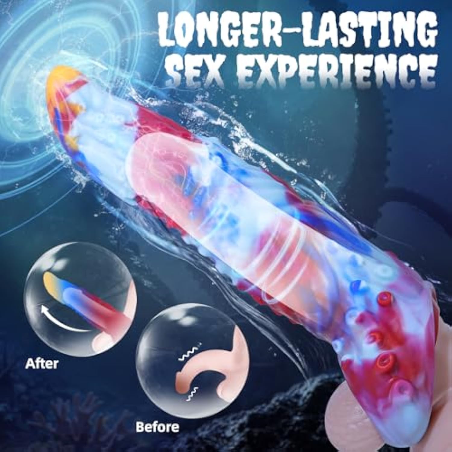 Penis Sleeve Octopus Tentacle Cock Sleeve-Monster Adult Male Sex Toys For Men Penis Extender?Fantasy Dildo Adult Sex Toys & Games For Men Women Couples (Blue Red)