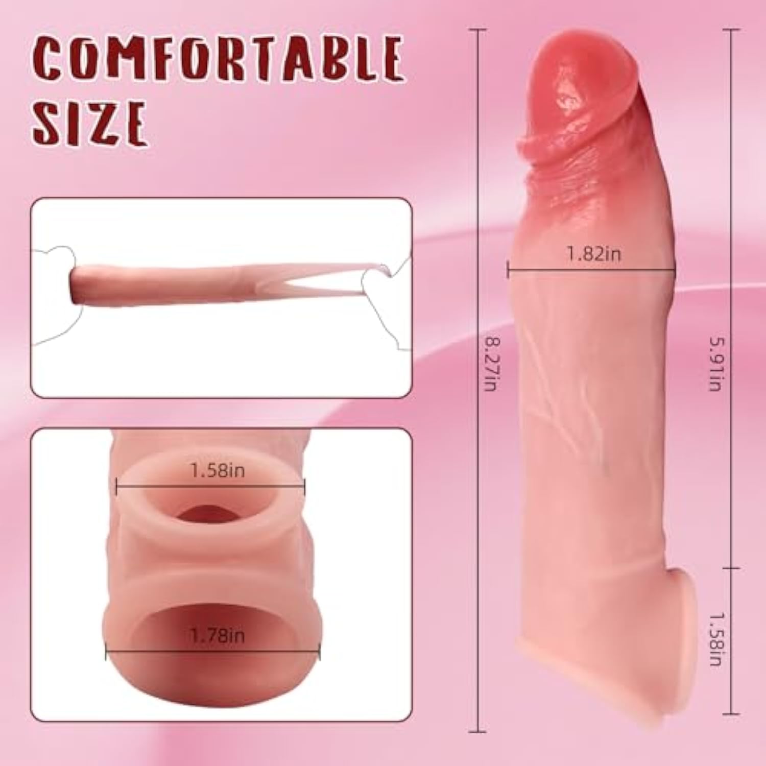 Penis Sleeve With Cock Ring Sex Toys, Ultra-Soft Silicone 8.6'' Cock Sleeve, Reusable Penis Cuff Thickened Testicle Ring Male Adult Toys, Penis Extender And Penis Enlarger For Men(Flesh)