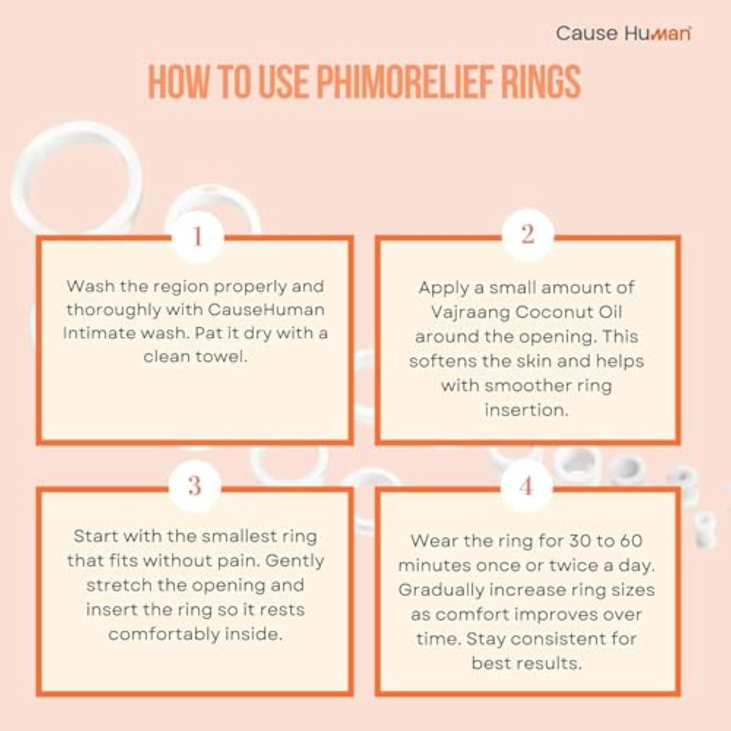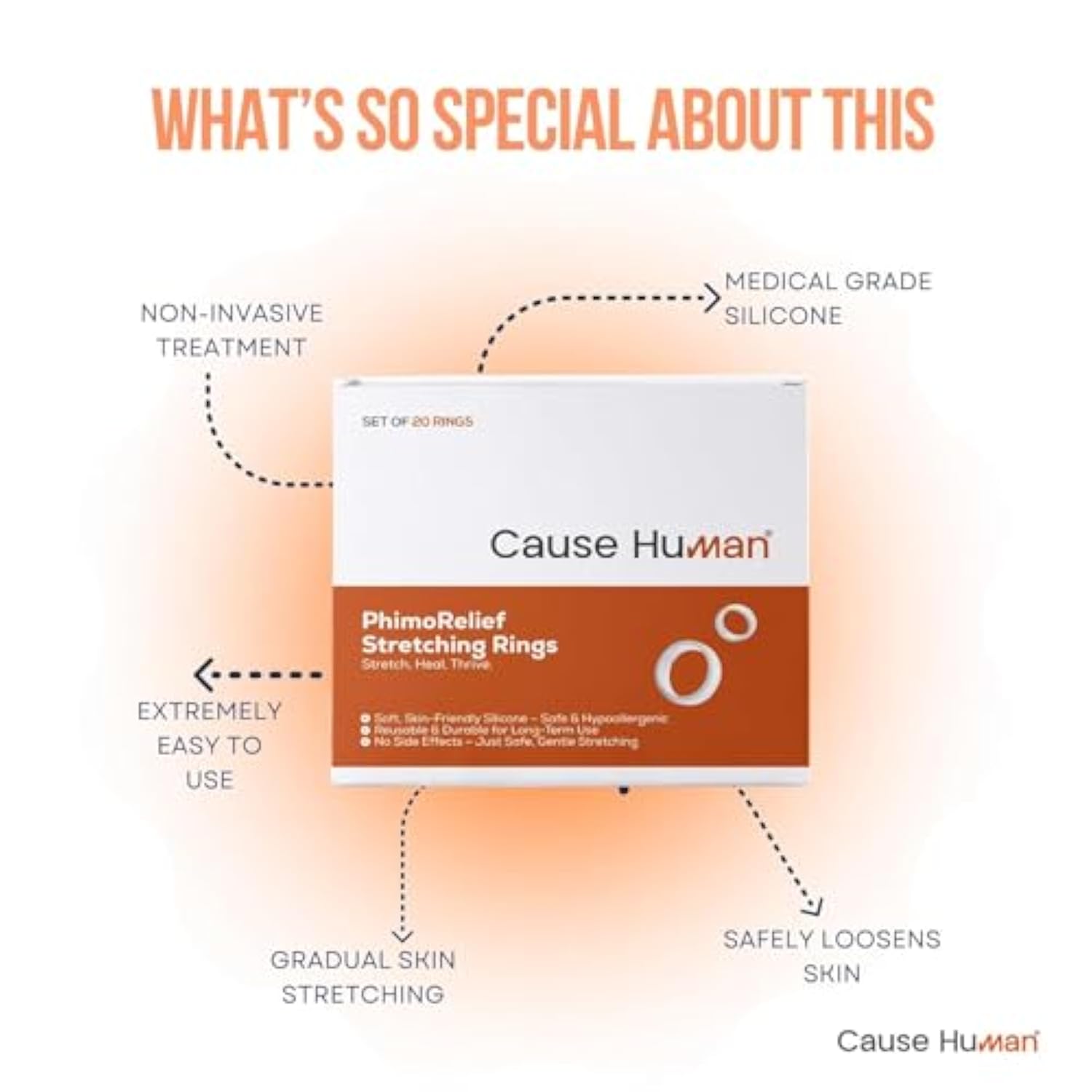 | Complete Phimosis Care Kit – Includes 20 Soft Silicone Rings In Progressive Sizes And A 30G Soothing Cream To Support Skin Flexibility And Comfort. | | Labelled Phimosis Rings – Made With Medical-Grade Silicone To Gently Support Skin Elasticity Over Time Through Stepwise Sizing | | Soothing Cream – Lightweight, Fast-Absorbing Cream Helps Nourish Dry, Sensitive Skin And Protects Against Tears And Dry Skin Due To Stretching. | | Discreet Easy To Use – A Home-Use Solution Designed For Privacy, Comfort, And Convenience. Progress At Your Own Pace. | |