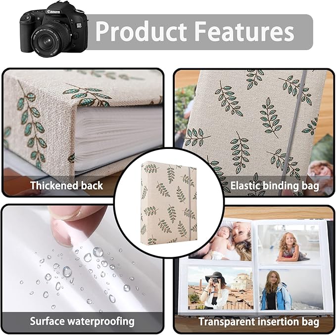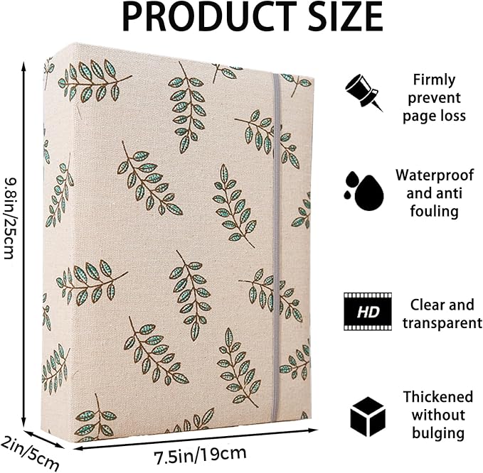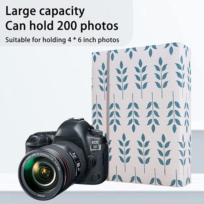 Photo Album 4x6 200 Photos Linen Cover Picture Photo Book for Family Wedding Anniversary Baby Vacation (200 Photos (4x6), Green Leaves)