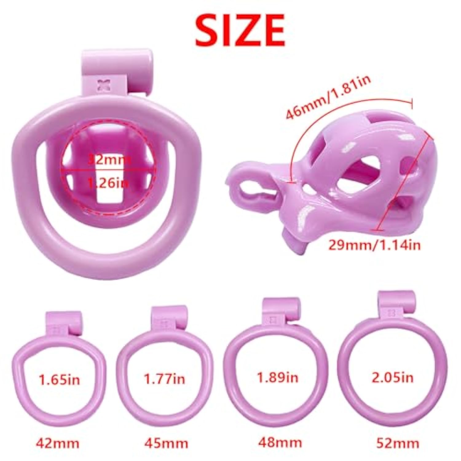 Pink Chastity Device For Men, Upgraded Ergonomic Nylon Resin Chastity Locked Cage With 4 Sizes Rings For Prevent Erection Penis Exercise Cook Cage Bondage Restraint Kit Sex Toy (Mini)