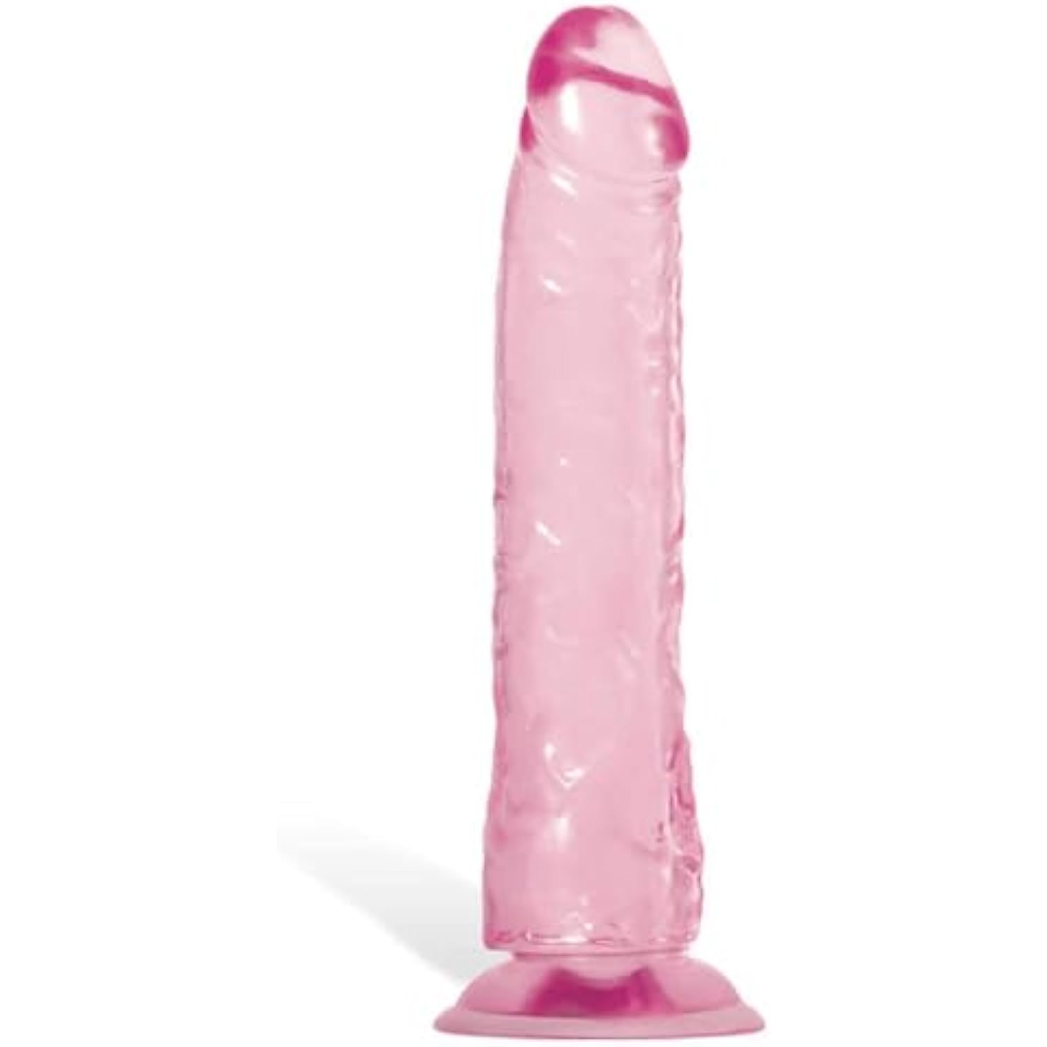 Pink Jelly Realistic Dildo Suction Cup Base Hands Free Play Flexible Shaft Textured Veins For Added Stimulation Harness Compatible Waterproof Beginner And Couples Friendly 8.25 Inch