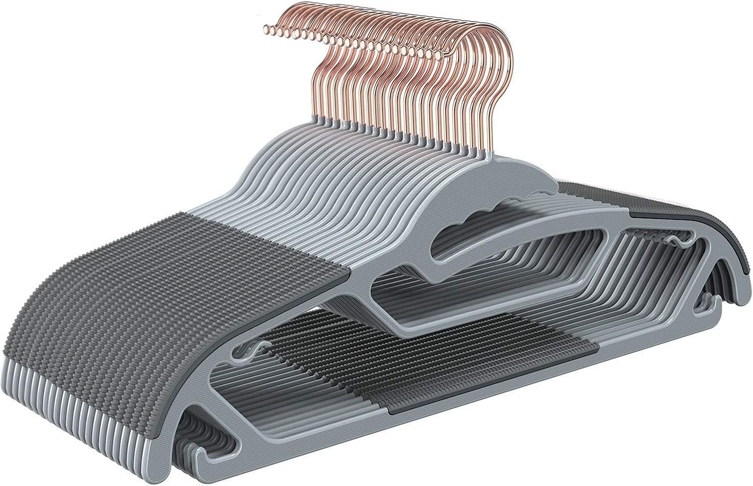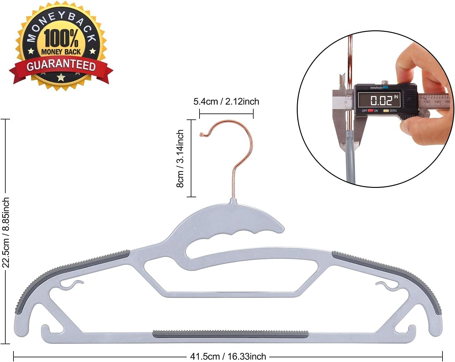 Plastic Hangers, 50 Pack Ultra Thin Non Slip Clothes Hanger Space Saving Coat Hangers, 360°rotating rose gold hook hanger Heavy Duty Pant Hangers (Grey)