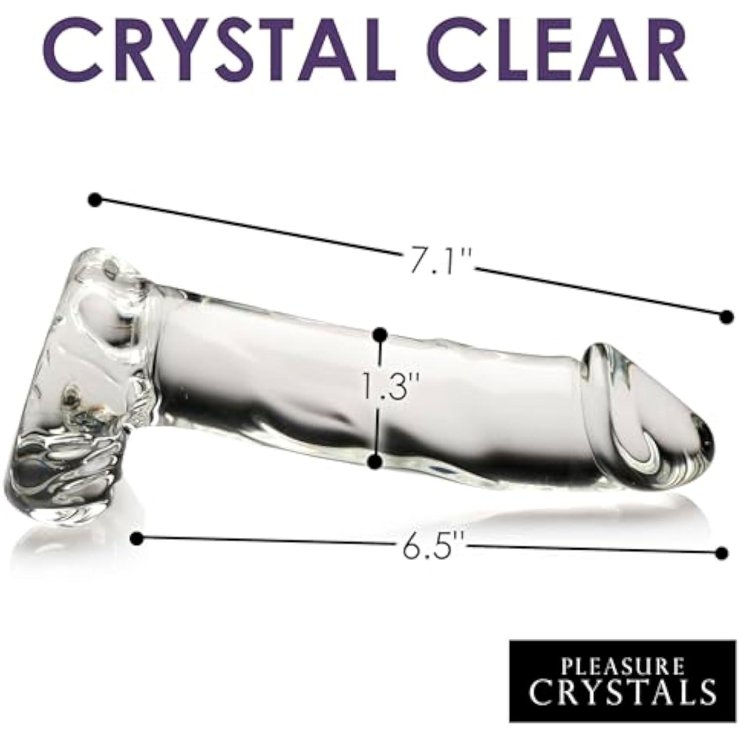 Pleasure Crystals 7.1" Glass Dildo With Balls For Men, Women & Couples. Realistic Texture, Latex-Free And Phthalate-Free, Ideal For Temperature Play. 1 Piece, Clear.