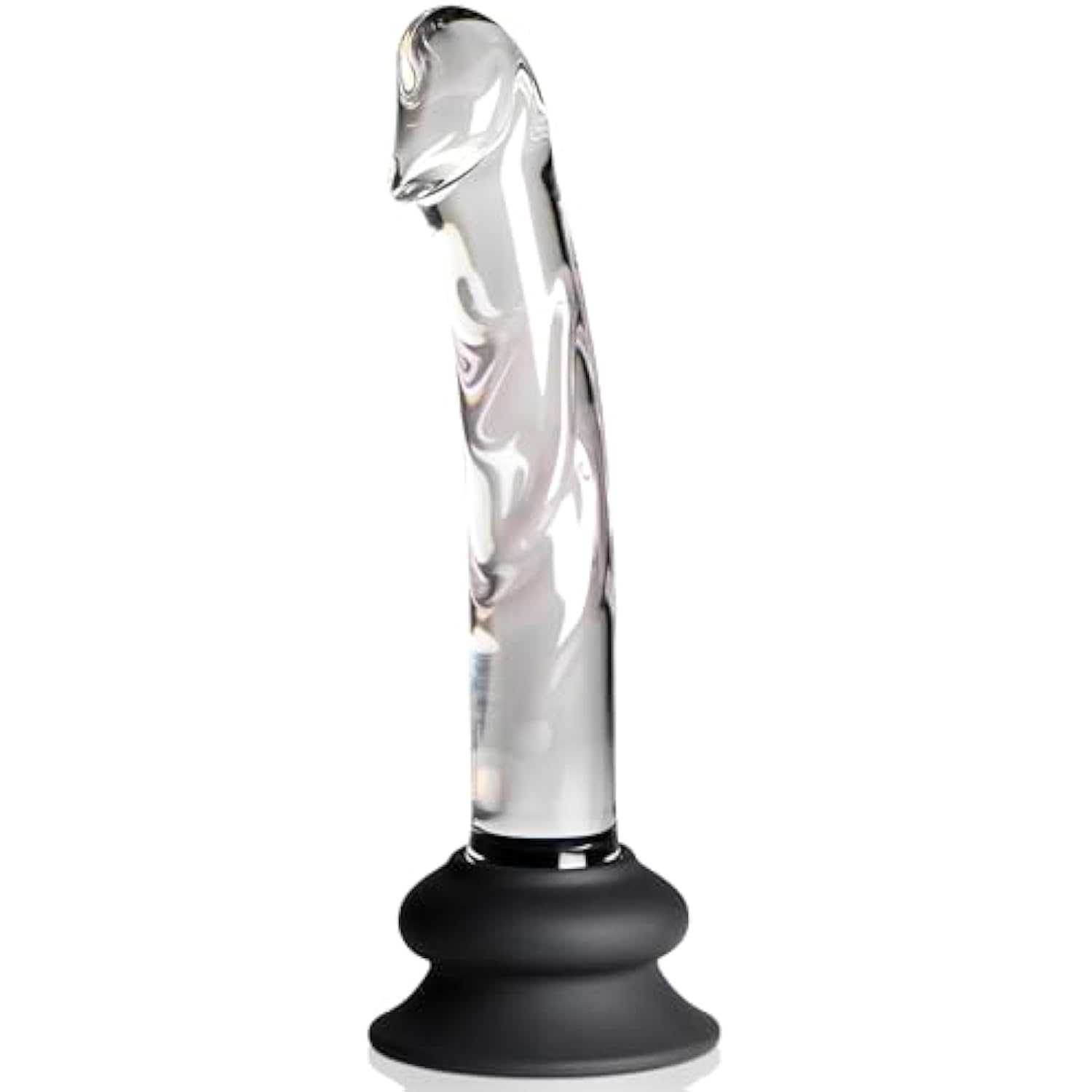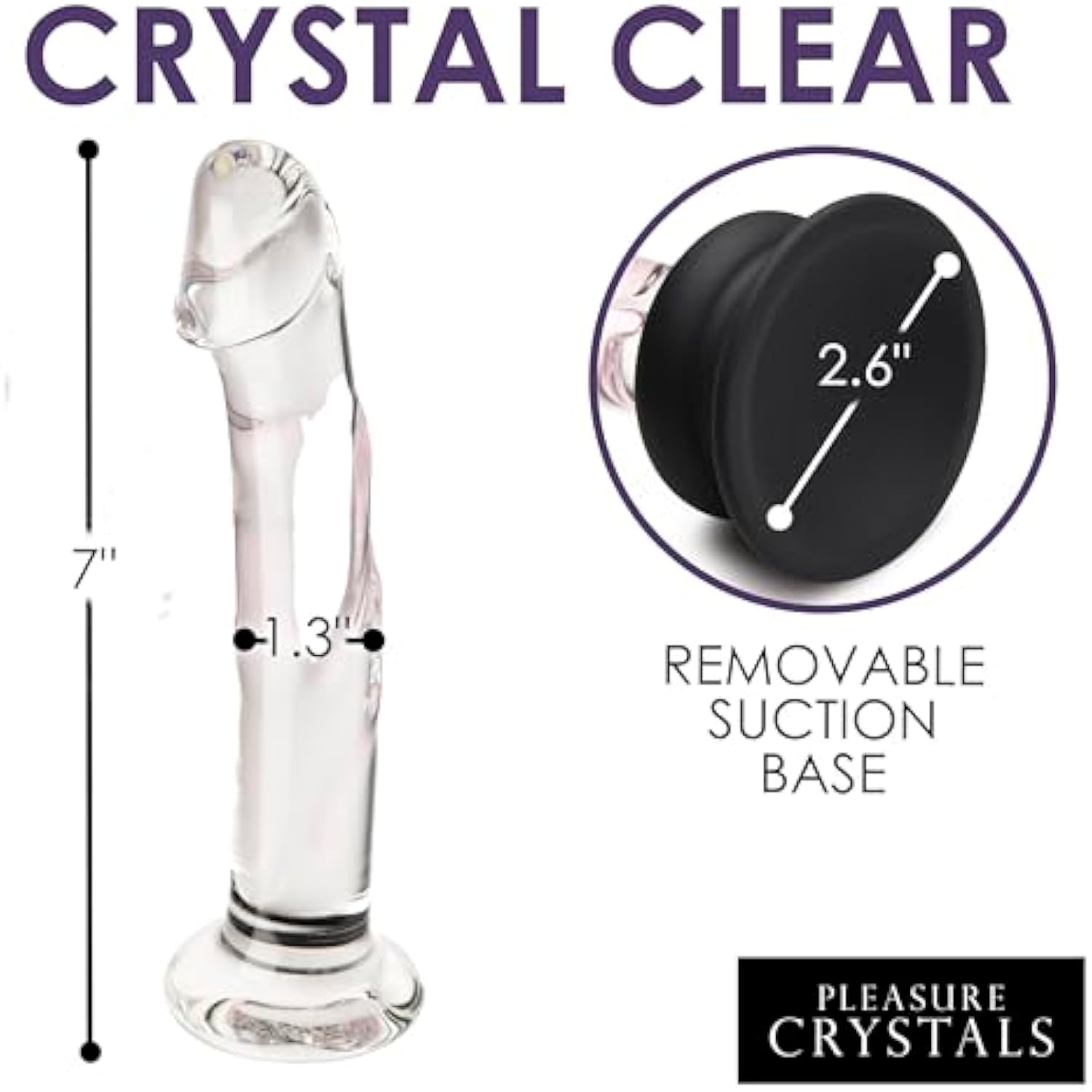 Pleasure Crystals 7" Glass Dildo With Silicone Base For Men, Women & Couples. Realistic Texture, Includes Removable Silicone Suction Cup, Ideal For Temperature Play. 2 Pieces, Clear.