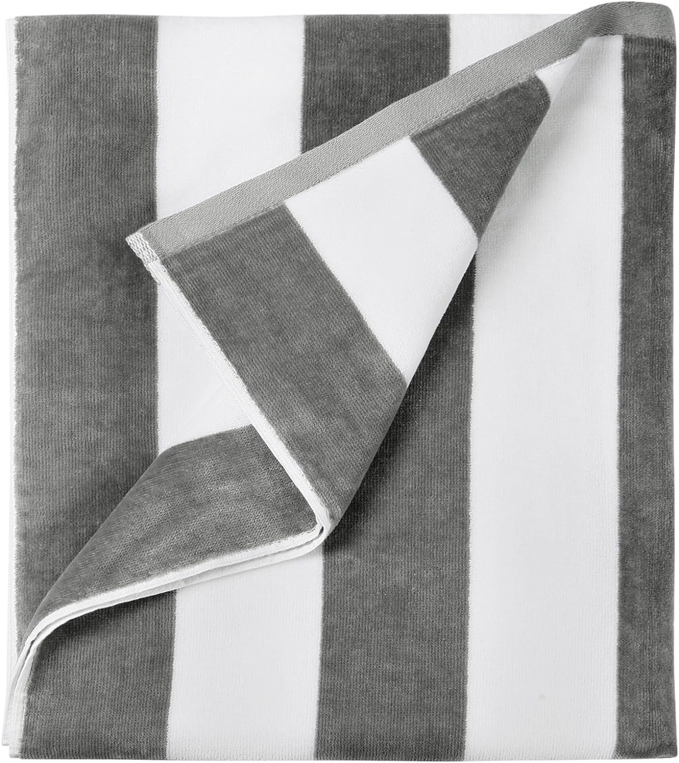 Plush Oversized Beach Towel - Fluffy Cotton Thick 36 x 70 Inch Gray Striped Pool Towels, Large Summer Cabana Swimming Towel for Adults