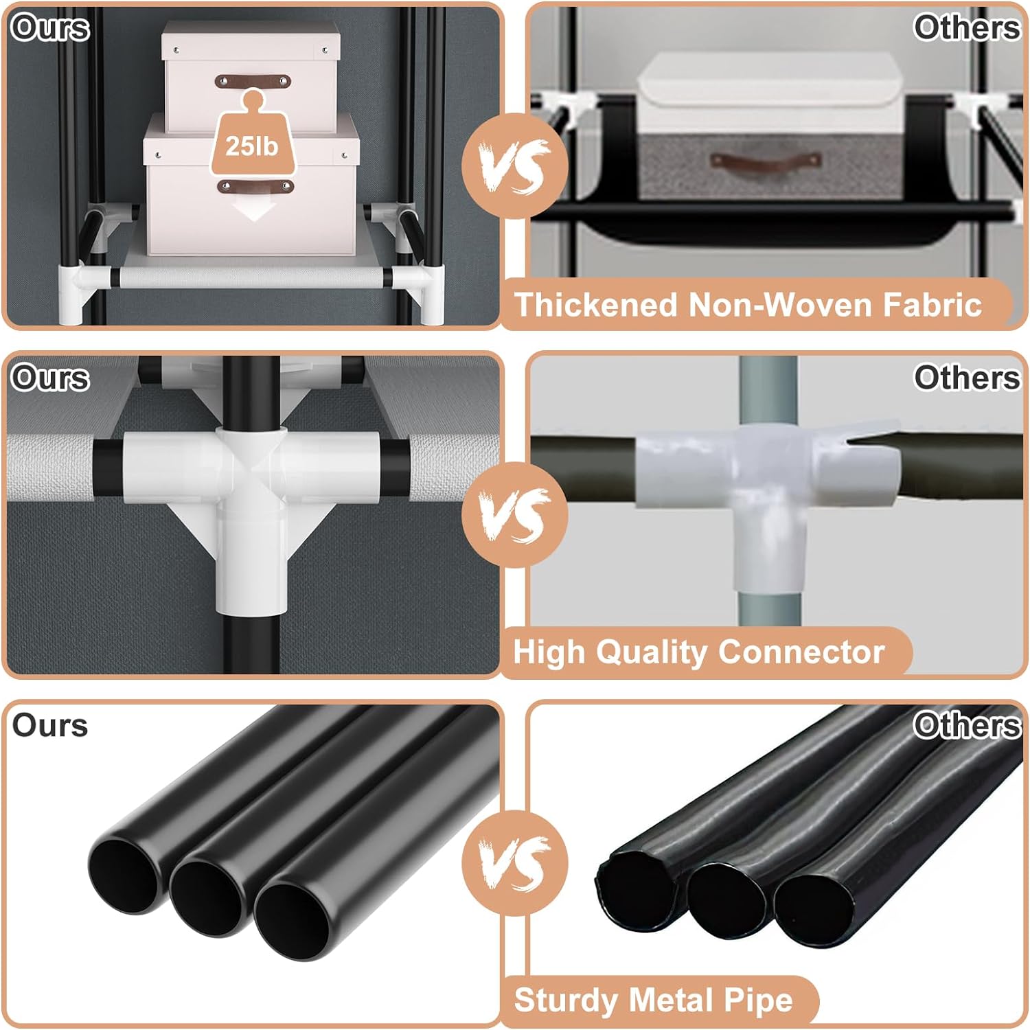 - 【Easy to Assemble】The portable closet wardrobe is equipped with a detailed installation instruction manual, just follow the steps of the instruction manual to assemble, and it can be done easily. In addition, we have made an installation video on the page for your reference to help you install faster. NOTE: Make sure all the rods reach the bottom of the plastic connector holes.