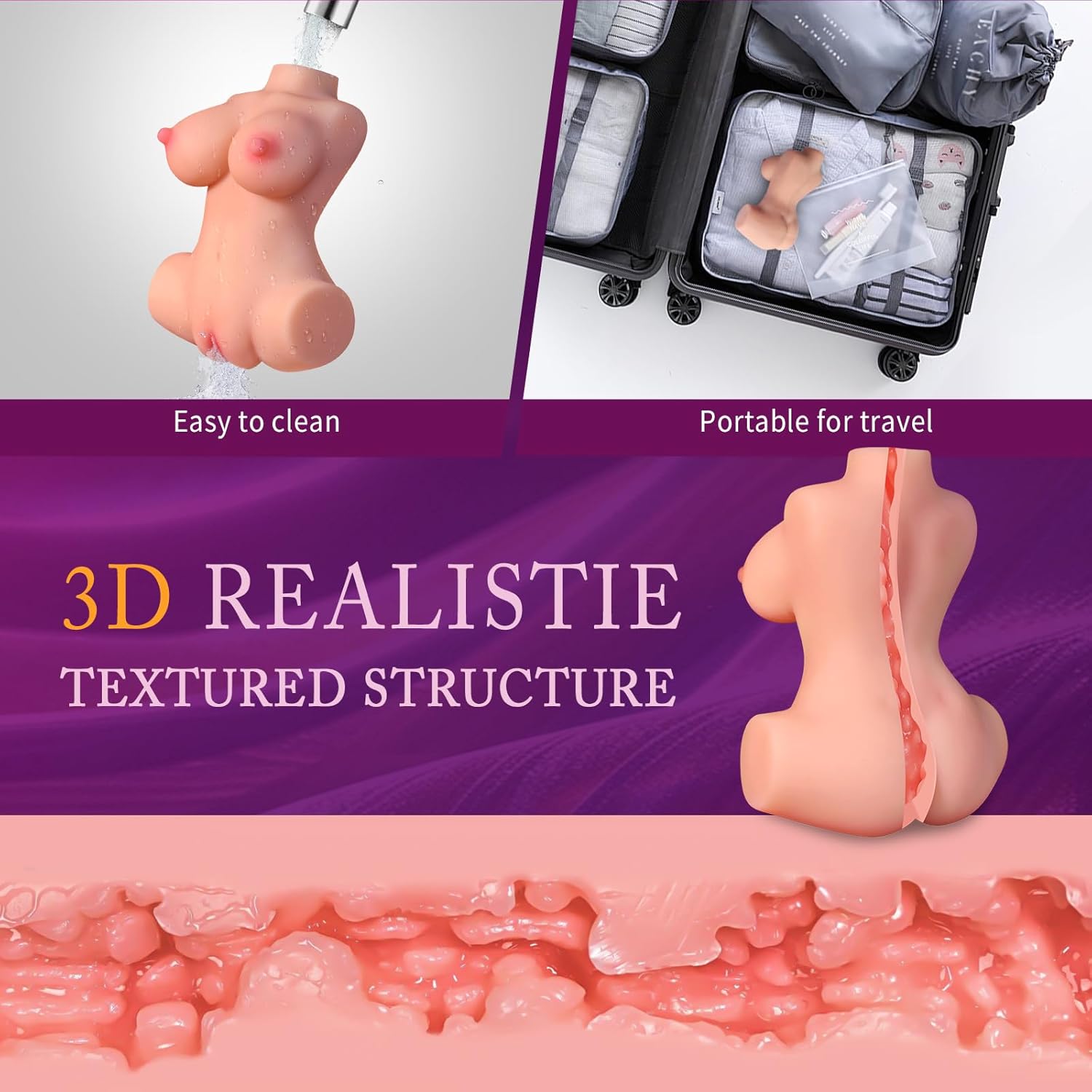3D Realistic Vaginal Texture: Designed with a 3D textured interior, the realistic vaginal opening features soft, elastic walls that offer intense stimulation. The detailed internal structure maximizes friction, providing a lifelike sensation with each use.