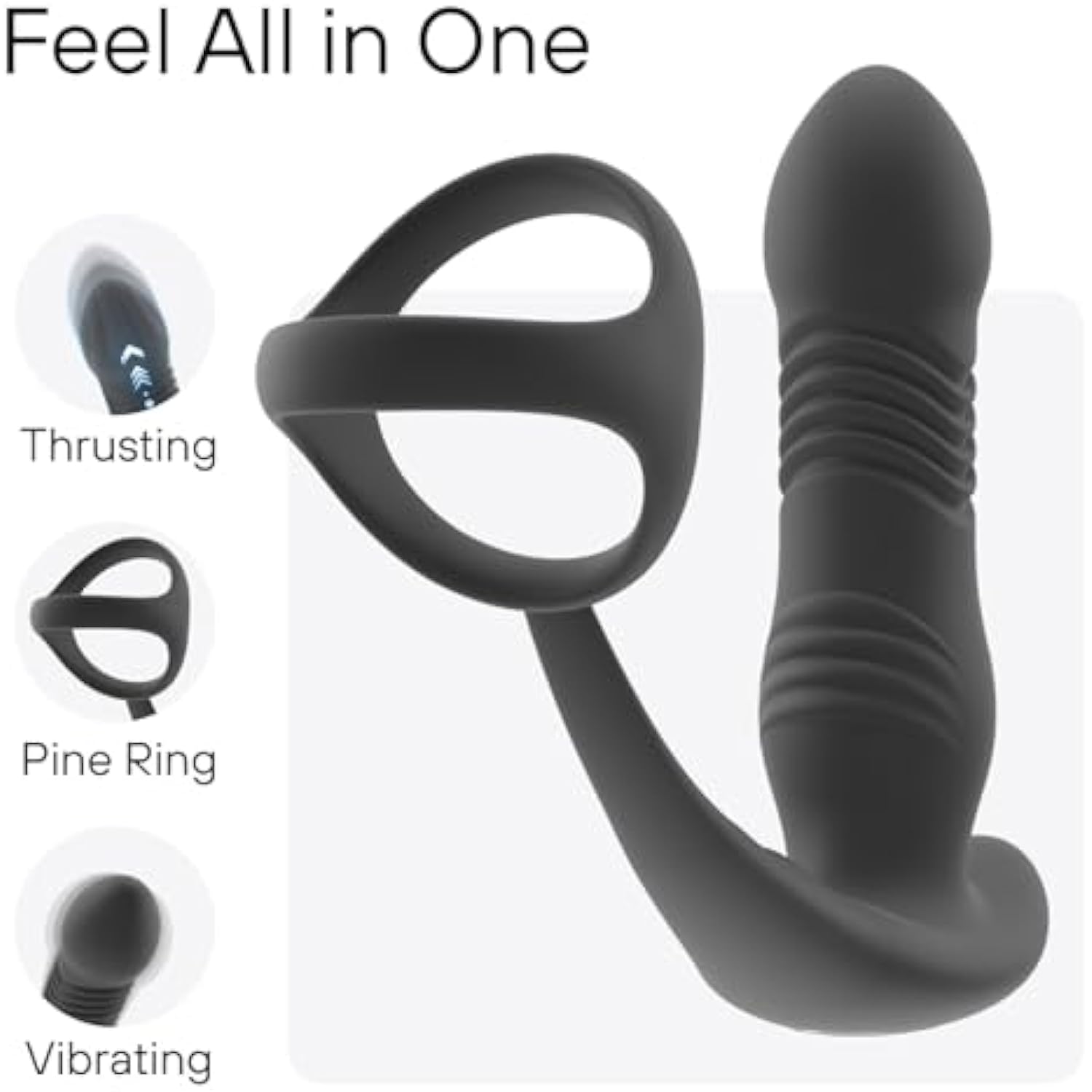 Pp-Controlled Prostate Massager And Penis Ring - Black Silicone Butt Plug Vibrator For Solo Play And Long-Distance Partner